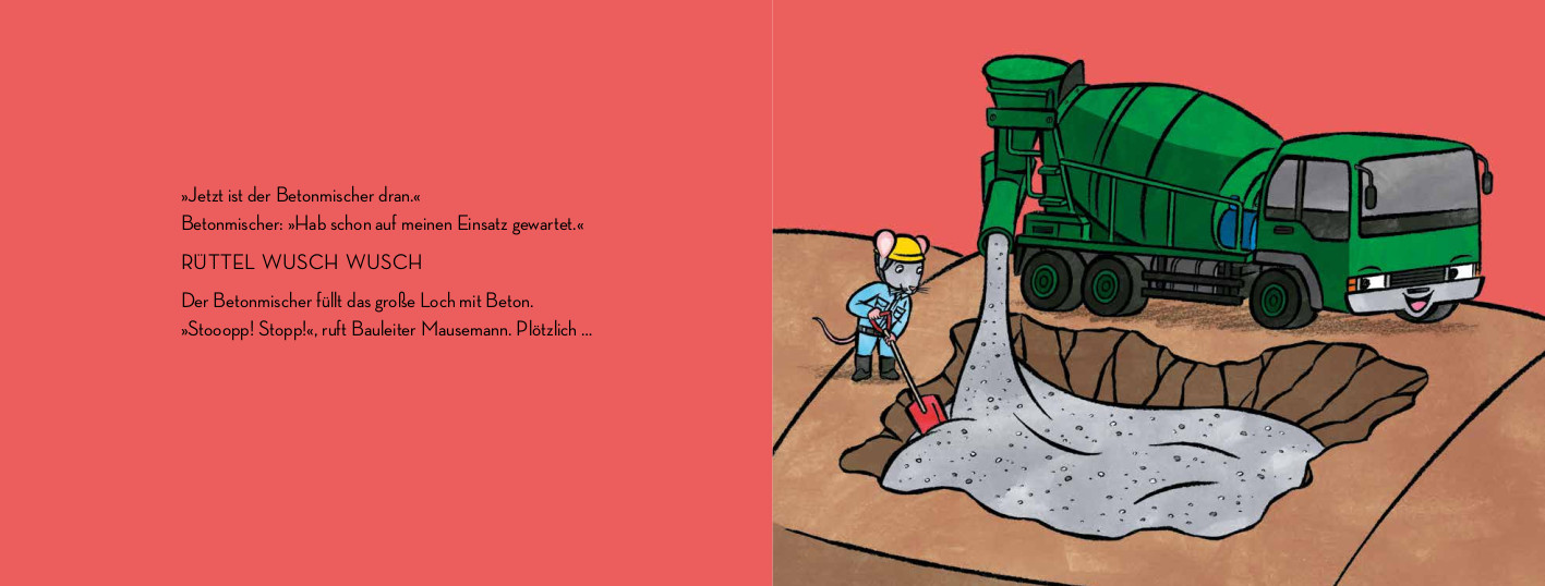| Schlagworte | Baustelle • Betonmischer • Bilderbuch ab 4 Jahren • Kipplaster • Kran • Nilpferd • Schaufelbagger • Zahnschmerzen |