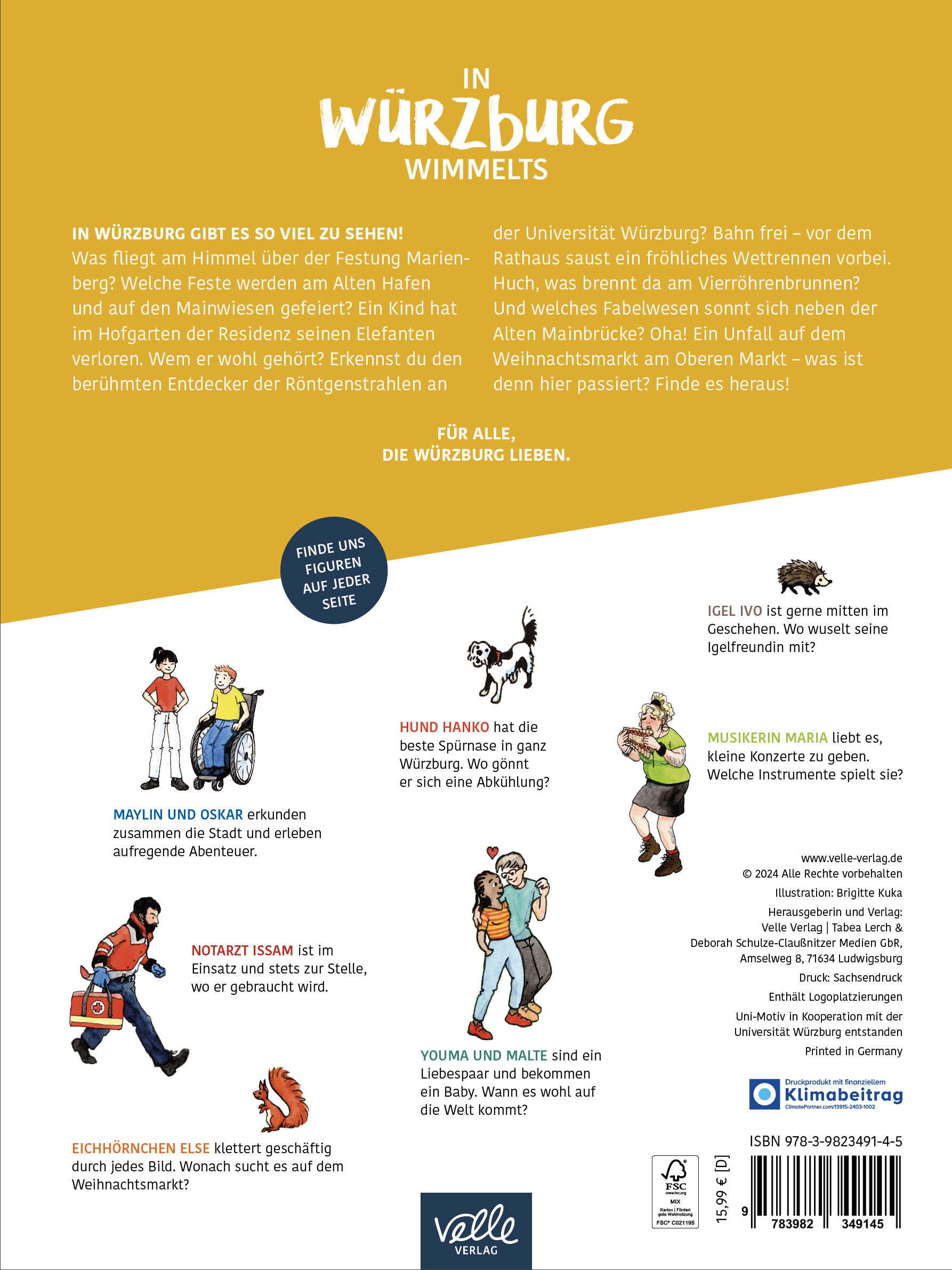 Sogar einige echte Würzburger:innen wimmeln mit! Und wer ganz genau schaut, entdeckt vielleicht sogar sich selbst in einer der Wimmelfiguren wieder.