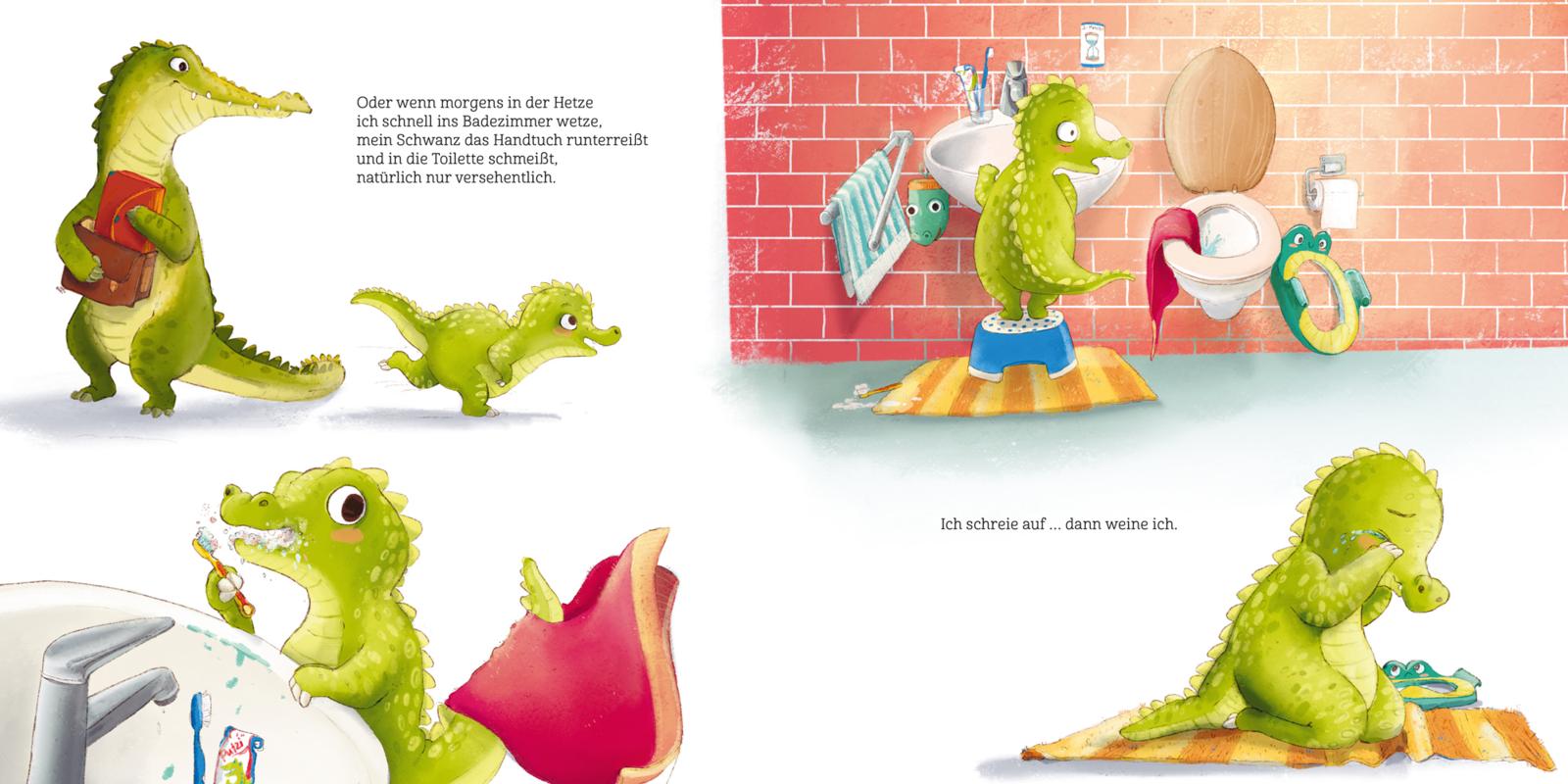 Juli, das kleine Krokodil, hat gar keine dicke Krokodilshaut, sondern ist sehr durchlässig. Schnell füllen sich die Augen des Krokodilkindes mit Tränen. Ob bei Missgeschicken oder Übergängen, bei Angst und Wut, ja sogar bei Mitleid und purer Freude muss das kleine Krokodilkind oftmals weinen. Zum Glück ist Papa da und gibt Juli Zeit, Raum und Halt. Denn er weiß ganz genau, dass Tränen rollen, wie sie wollen. Das Weinen ist für ein so wunderbar empfindsames Kind wie Juli ein wichtiges Ventil, um sein Erlebtes und Gefühltes zu verarbeiten.