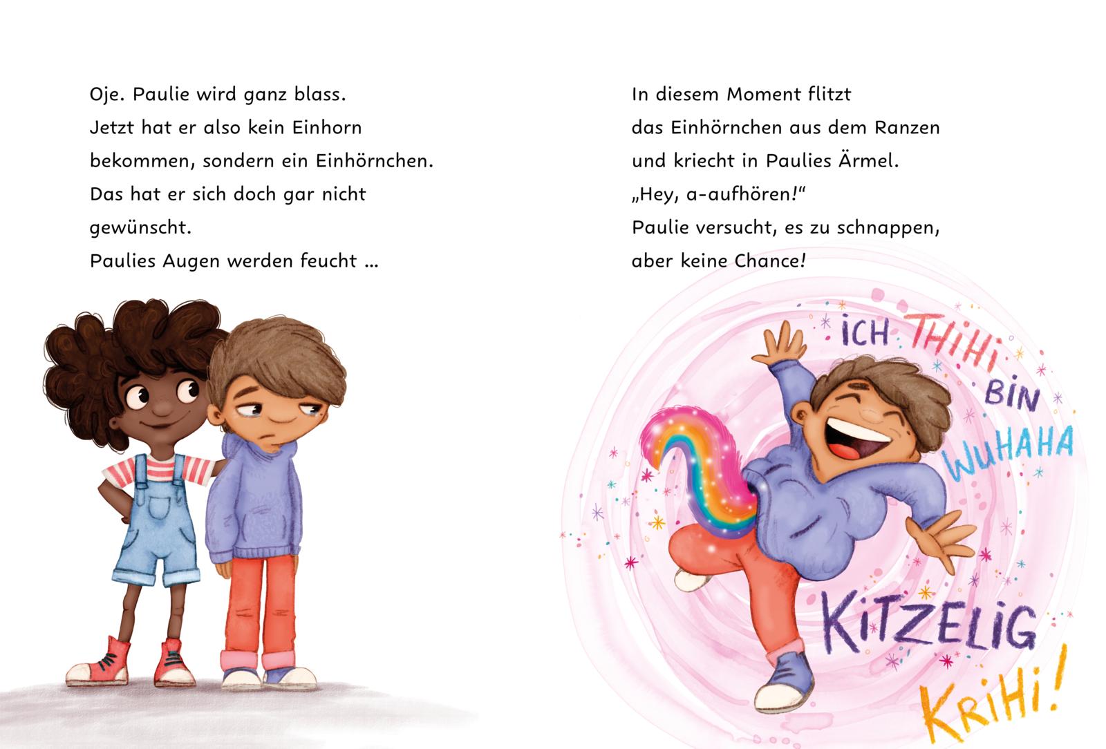 Paulie hat einen Flunsch gefangen, einen fliegenden Wunsch! Jetzt wird endlich sein sehnlichster Traum in Erfüllung gehen: ein echtes Einhorn! Doch als Paulie den Flunsch über Nacht ins Marmeladenglas setzt und seinen Zettel dazulegt, übersieht er einen Rest Marmelade im Glas. Davon nascht der Flunsch und niest - direkt auf Paulies Wunschzettel: Happs, hatschi, flatsch! Statt eines glitzerrosaroten Einhorns erwartet Paulie am nächsten Morgen ein seltsames Fabelwesen: Halb Einhorn, halb Eichhörnchen. Und das stellt Paulies Leben ganz schön auf den Kopf ...