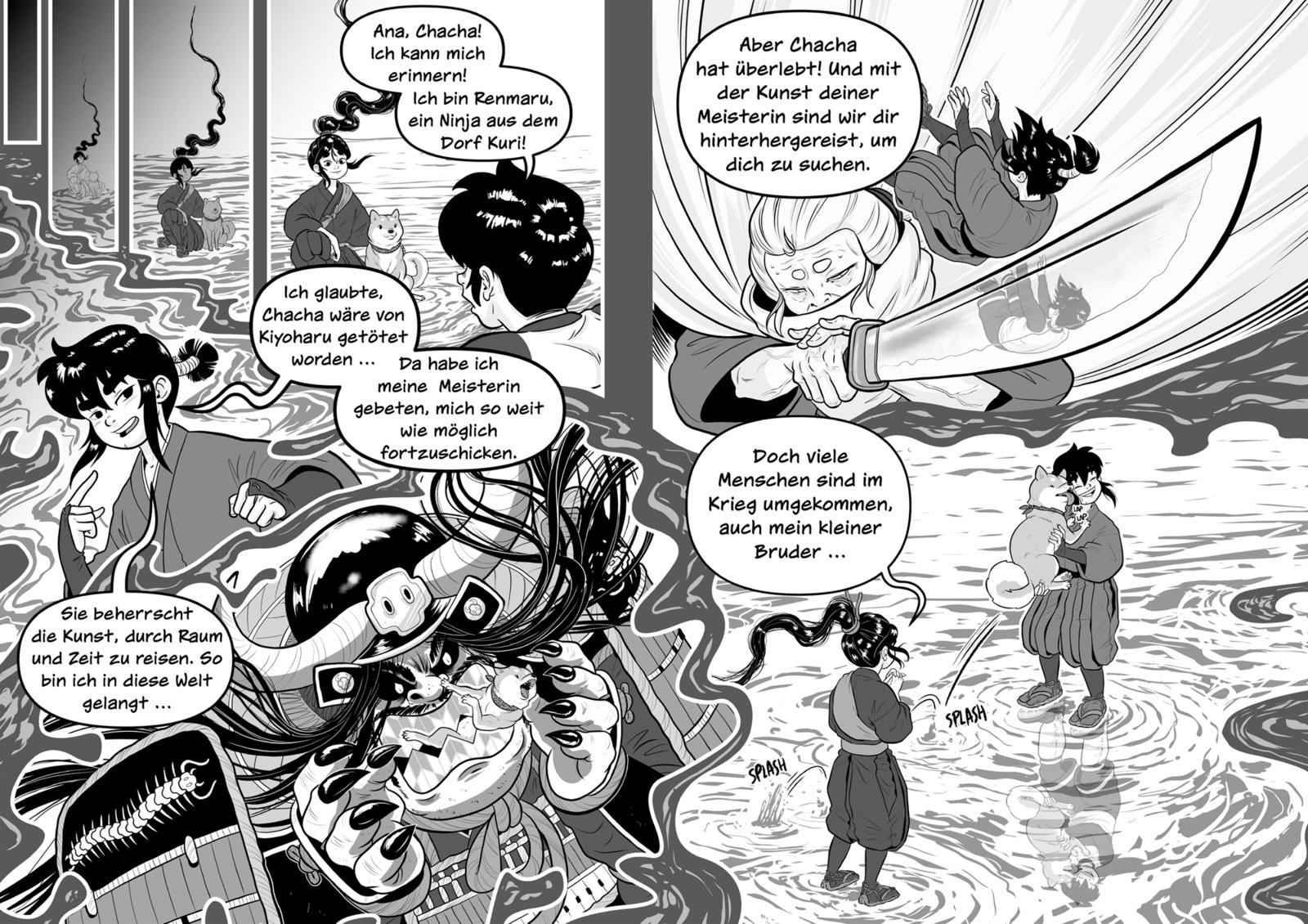 Ren ist ein Ninja mit außergewöhnlichen Fähigkeiten - er kann mit Tieren sprechen! Doch jetzt stehen er und sein treuer Hund Chacha vor einer neuen Herausforderung: Ein Ninja-Mädchen braucht Rens Hilfe. Um ihren Auftrag zu erfüllen, muss Ren sich unsichtbar machen. Um das zu lernen, reist er in die Vergangenheit und trifft dort den großen Meister der Unsichtbarkeit und Tarnung. Doch unsichtbar werden ist alles andere als einfach.