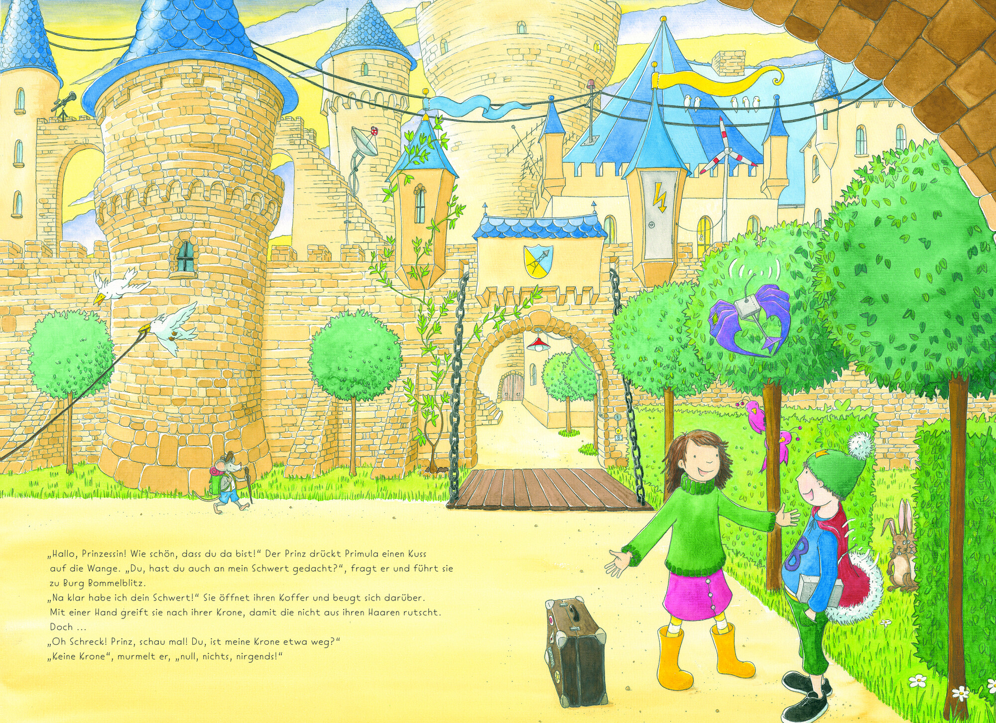 Liebe Prinzessin, ich bin's dein Prinz! Ein Brief von Balthasar, doch oje! Er hat bei seiner Freundin Prinzessin Primula sein Schwert vergessen. Und ein Prinz ohne Schwert – das geht gar nicht! Das ist schlimmer als nackig! Also macht Primula sich auf, um ihrem Freund das Schwert zu bringen. Doch für die Reise, die sie über Berg und Tal, durch Ozeane und Sümpfe führt, muss sie erst einmal packen, denn für solch eine Abenteuertour ist allerhand Equipment nötig. Wozu? Das wird man sehen und erleben! Auf der spannenden Reise gibt es überall viel zu entdecken, zu suchen und zu zählen.