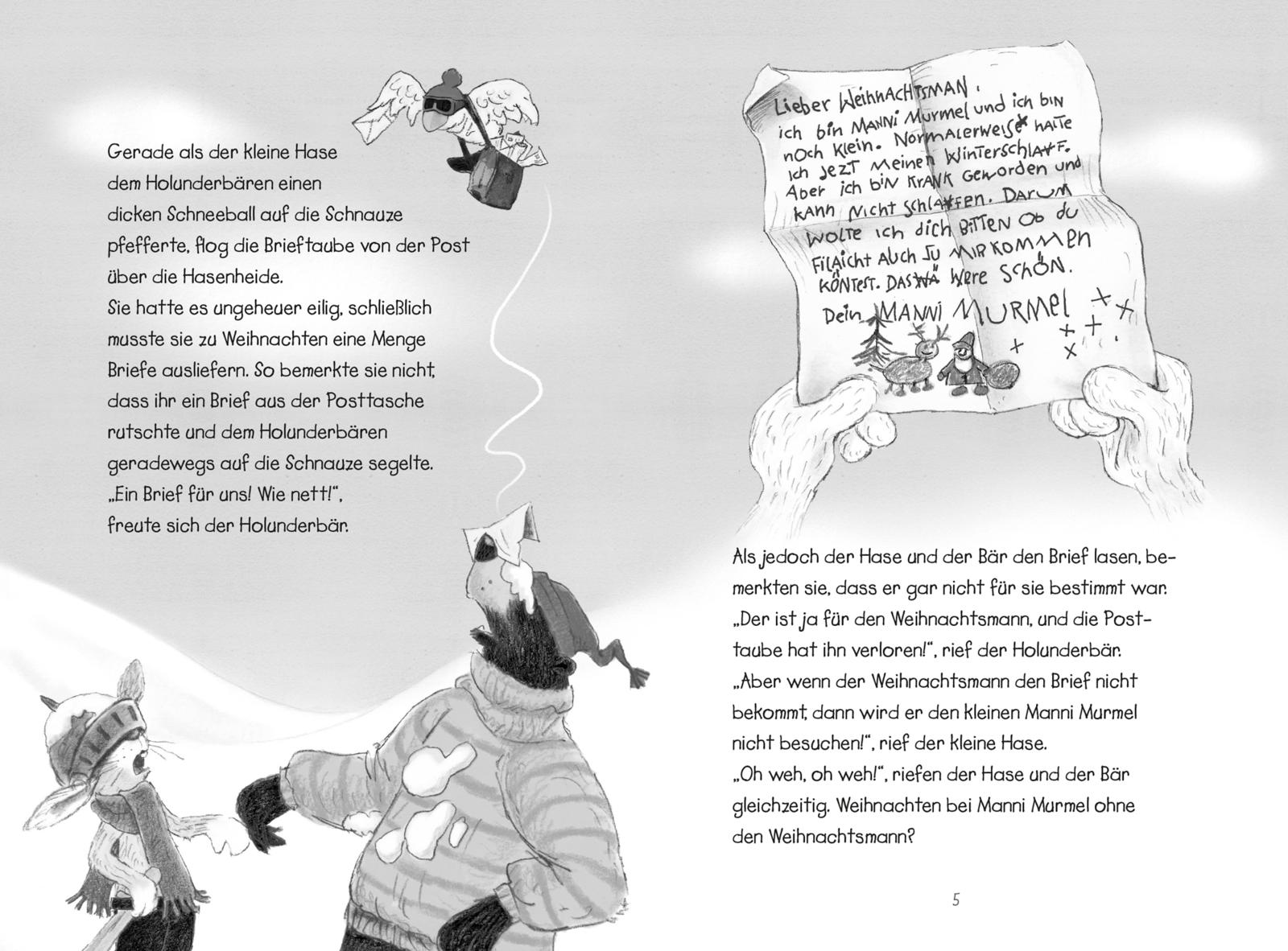 Was ist schöner, als die Weihnachtszeit im Winterwald zu verbringen? Nichts, da sind Hase und Holunderbär sich einig! Alles ist von weiß glitzerndem Schnee bedeckt, der sich auch noch wunderbar für Schneeballschlachten eignet. Aber was wäre die schönste Zeit des Jahres ohne ein paar Turbulenzen? So helfen die beiden Freunde dem dicken Hasen Jakob, dessen Bau kurz vor dem Fest unter der Schneedecke zusammenbricht und unternehmen eine aufregende Reise durch den Winterwald, um dem Weihnachtsmann einen Brief zu überbringen. Eines ist aber sicher - mit Hase, Holunderbär und ihren Freunden wird das Weihnachtsfest immer ein richtiger Erfolg.