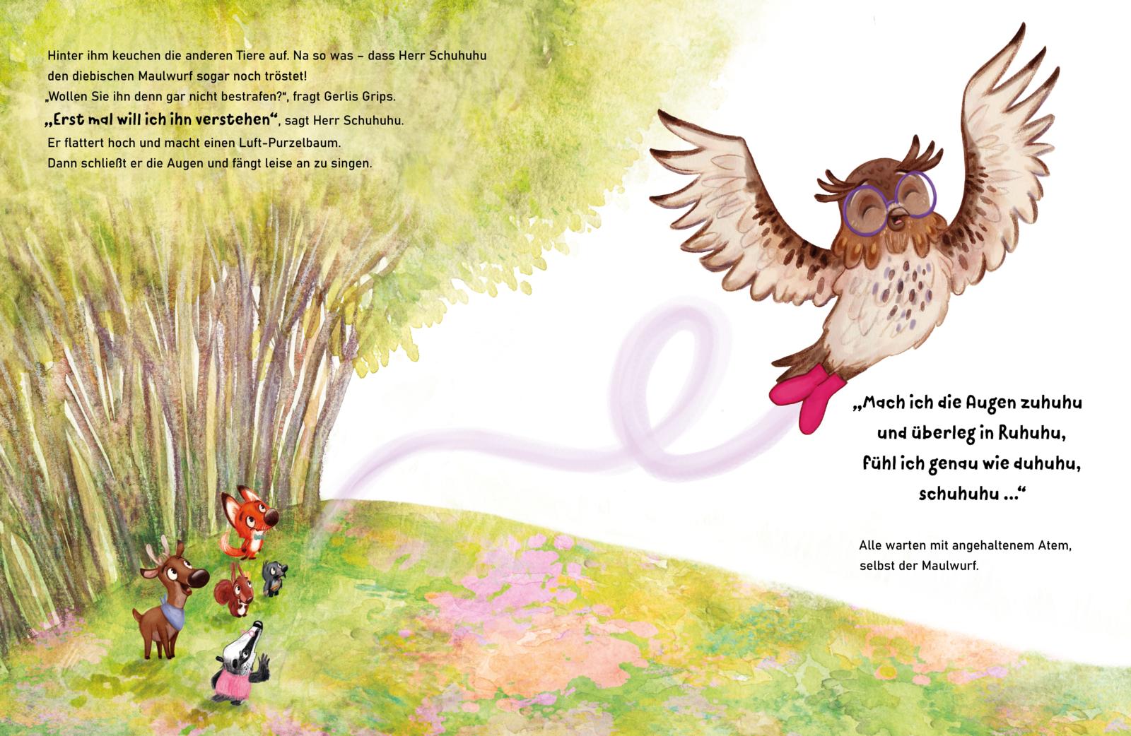 Die anderen Waldtiere sind sich sicher: Muff Molton muss der Dieb sein. Der Maulwurf ist gerade erst nach Waldesruh gezogen und irgendwie ist er ... anders. Wütend wollen sie ihn zur Rede zu stellen. Aber Herr Schuhuhu tröstet den traurigen Muff und versucht zu verstehen, was wirklich hinter dem Diebstahl steckt.