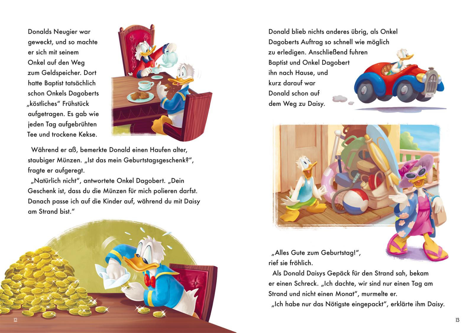 Donald Duck zählt zu den ersten Disney-Charakteren, die nach Micky Maus, Goofy und Pluto das Licht der Welt erblickt haben. Seither begeistert der liebenswerte Tollpatsch große und kleine Disney-Fans. Und während er von einem Abenteuer ins nächste stolpert, kann er immer auf die Unterstützung seiner Freundin Daisy, seines geizigen Onkels Dagobert und seiner vorwitzigen Neffen Tick, Trick und Track zählen. Kindgerecht erzählt und voller humorvoller Bilder ist dieses Geschichtenbuch ein wahrer Schatz für die ganze Familie!