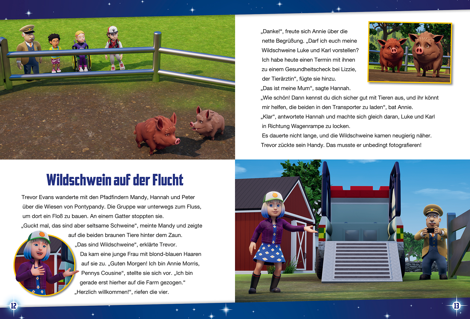 Komm mit nach Pontypandy und erlebe spannende Rettungsaktionen mit Feuerwehrmann Sam und seinem Team! Ob im Wald ein gefährliches Feuer ausbricht, Annies Wildschwein ausbüxt, ein seltener Dinosaurierknochen verschwindet oder beim Tierfotowettbewerb alles schiefgeht - mit Mut, Hilfsbereitschaft und dem nagelneuen Jupiter meistern Sam und sein Team auch die kniffligsten Herausforderungen.Vier unterhaltsame Vorlesegeschichten von Feuerwehrmann Sam - perfekt für die letzten fünf Minuten vor dem Schlafengehen!
