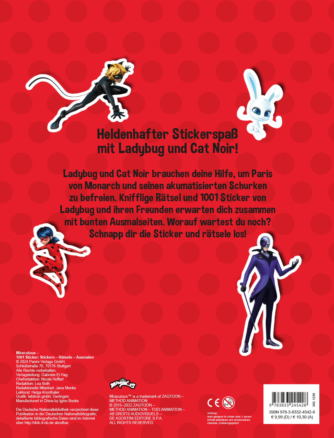 | Schlagworte | Activityblock • Ausmalen • Beschäftigung • Cat Noir • h24 • Kinderbeschäftigung • Kinderbuch • Kinderbücher • ladybug • Langeweile • Miraculous • Panini • PBK • Rätselblock • Rätselbuch • Rätseln • Stickern |