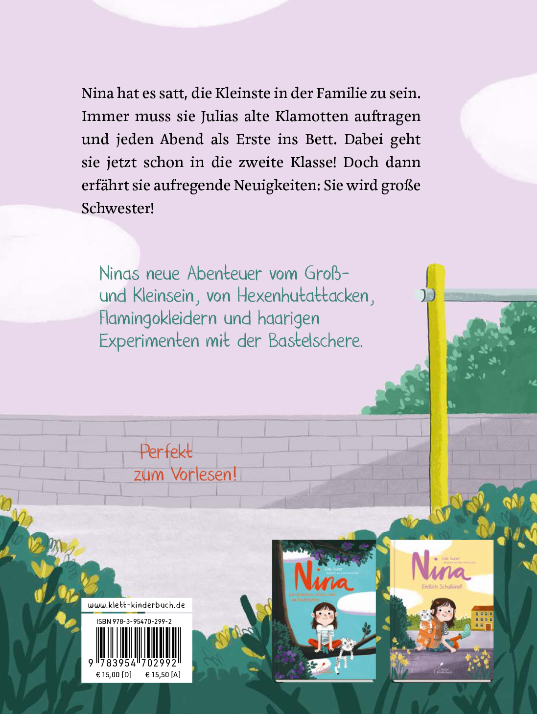 Nina hat es satt, die kleine Schwester zu sein. Immer muss sie Julias alte Klamotten auftragen und jeden Abend als Erste ins Bett. Dabei geht sie doch schon in die zweite Klasse! Nina reicht's ... Bis sie etwas unglaublich Aufregendes erfährt: Sie wird große Schwester!