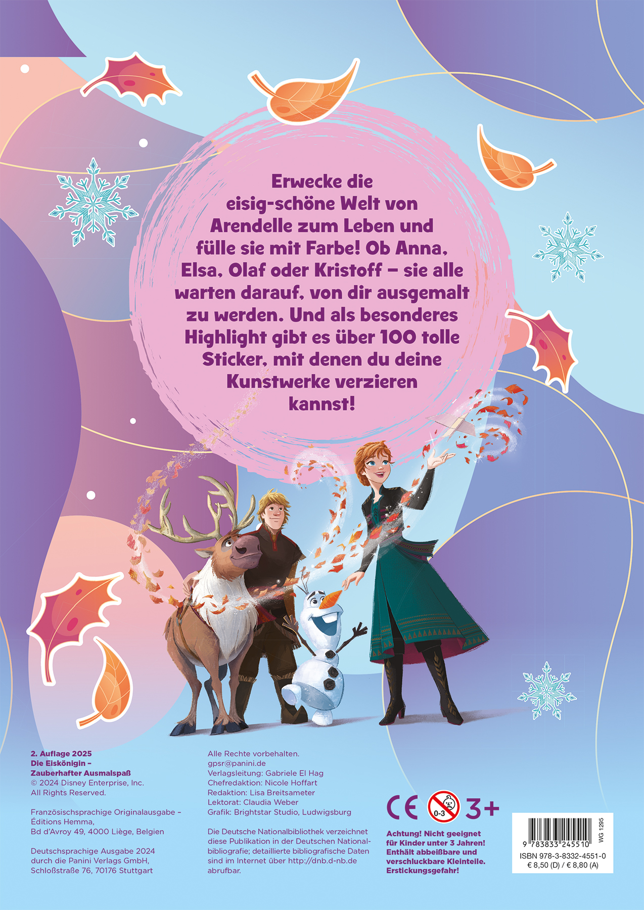 Erwecke die eisig-schöne Welt von Arendelle zum Leben und fülle sie mit Farbe! Ob Anna, Elsa, Olaf oder Kristoff - sie alle warten darauf, von dir ausgemalt zu werden. Und als besonderes Highlight gibt es über 100 tolle Sticker, mit denen du deine Kunstwerke verzieren kannst!