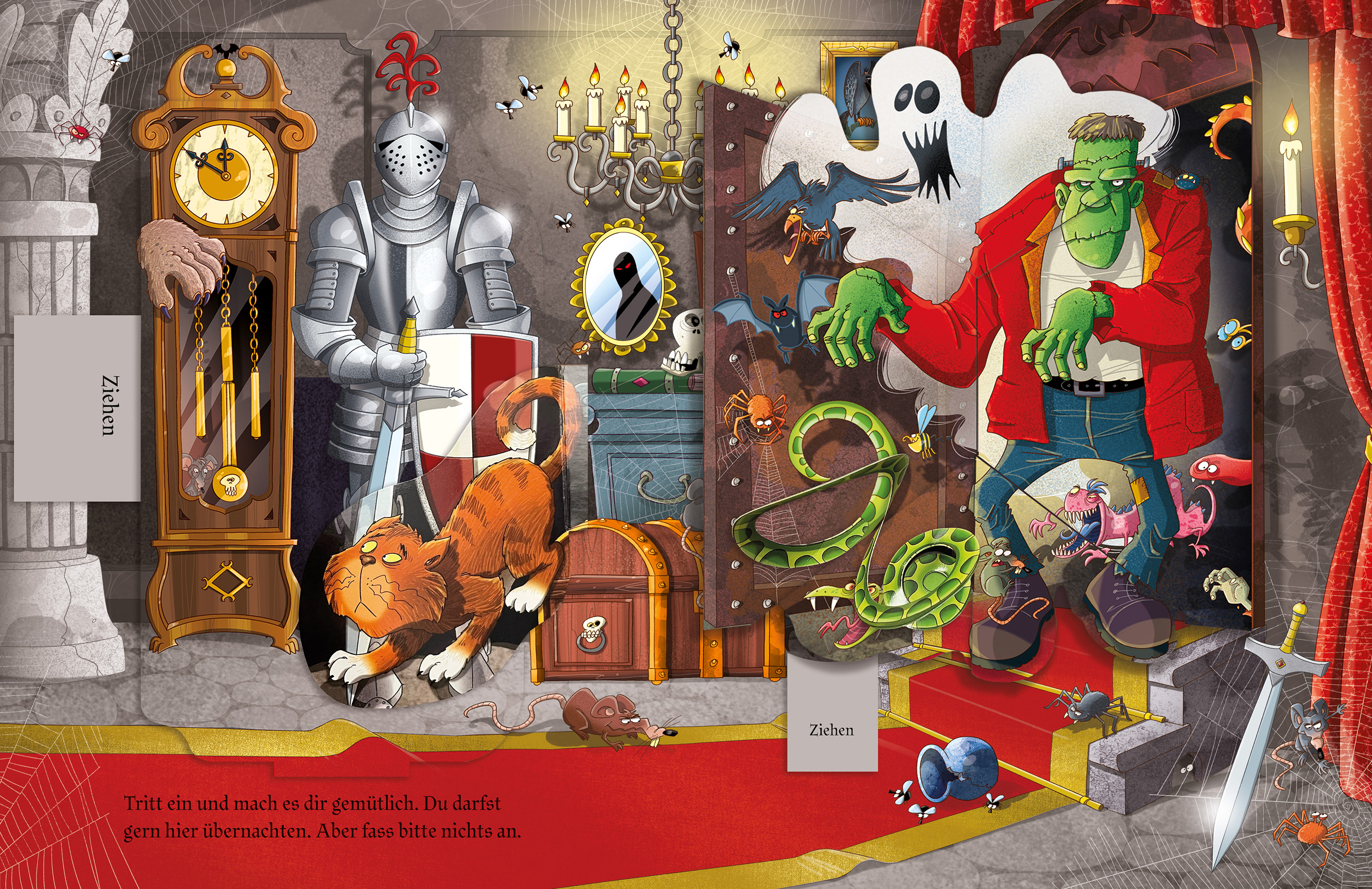 Hereinspaziert ins Geisterschloss! Hinter der knarrenden, alten Tür erwarten dich Vampire, Werwölfe, Skelette und jede Menge Monster. Sieh zu, wie sie beim Umblättern zum Leben erwachen. Die Pop-ups, Klappen und Schieber garantieren Gänsehaut und Gruselspaß auf jeder Seite!