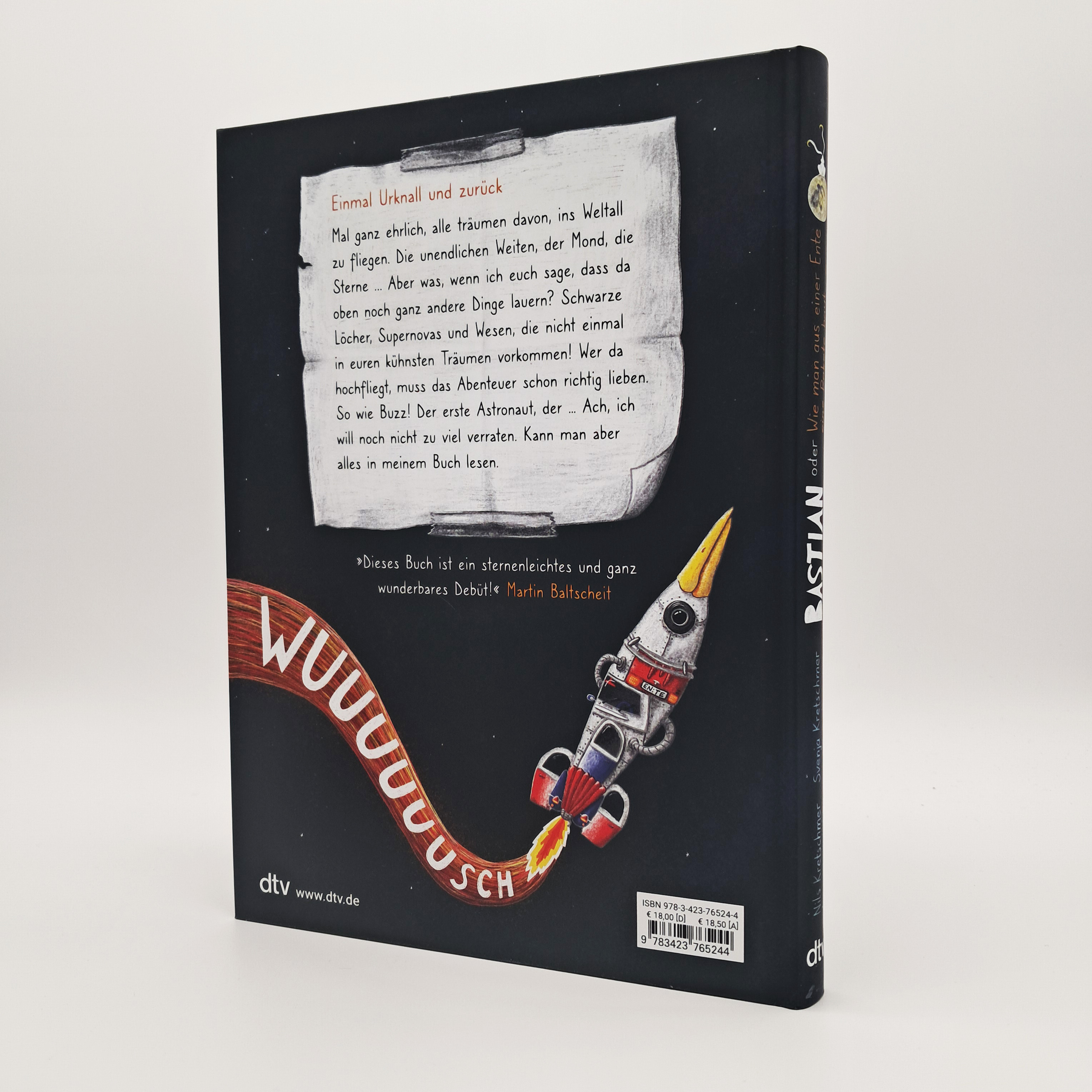 | Schlagworte | Alter Ego • Beziehung • Dunkelheit • Geburtstag • Himmel • Literatur für Kinder • Mond • Mondlandung • Mutter • Neil Armstrong • Rakete • Raumfahrt • Raumfahrt Kinderbuch • Schwarzes Loch • Schwerelosigkeit • Sterne • Sternenhimmel • Sternenstaub • Sternwarte • Stumm • Teleskop • Trauer • Trauerbewältigung • Universum • Urknall • Vater • Verlust • Weltall • Weltall Kinderbuch • Weltraum |