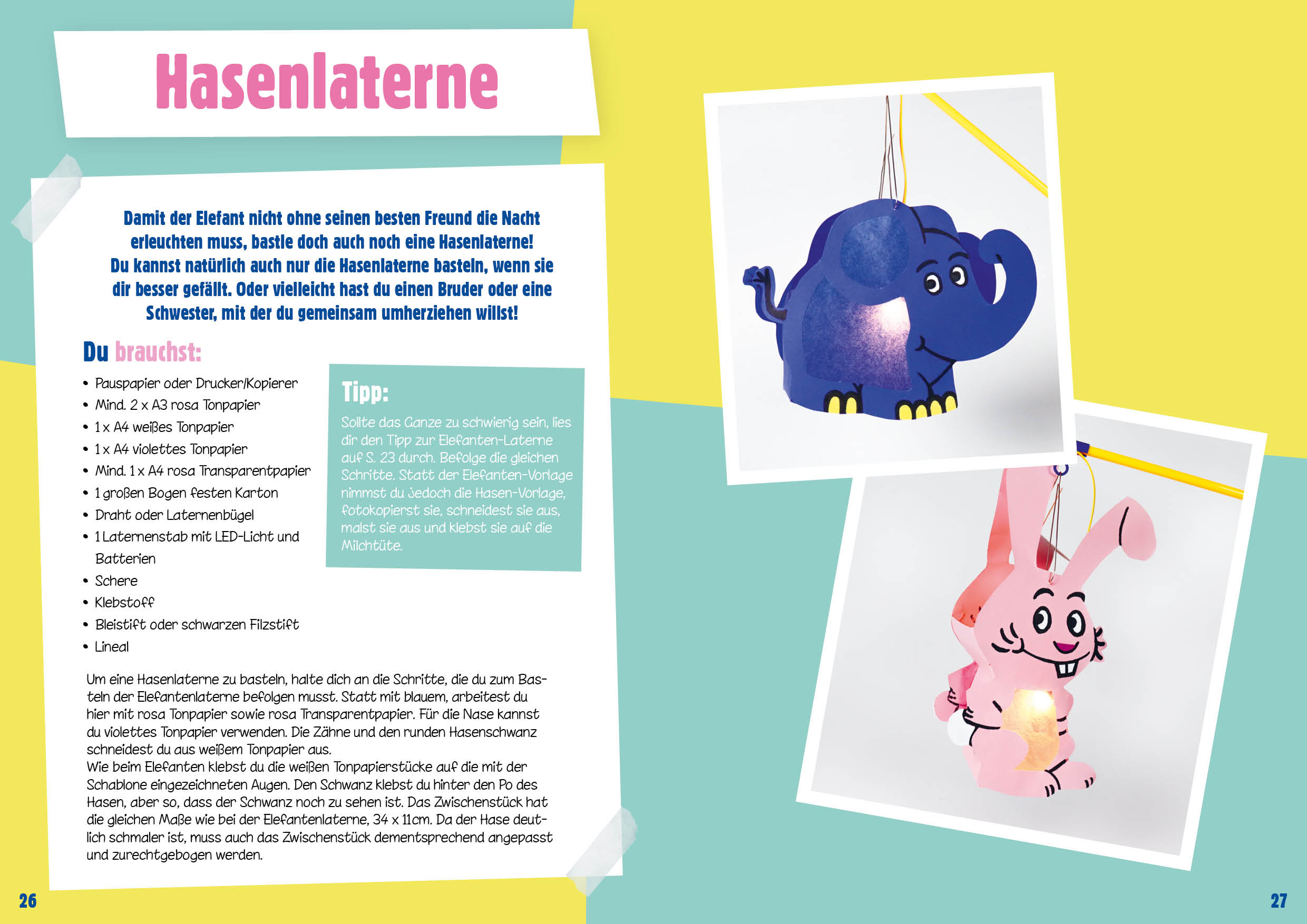 - Einfache Bastelanleitungen für eine Elefantenmaske, eine Elefantenlaterne, ein Partyhütchen und mehr