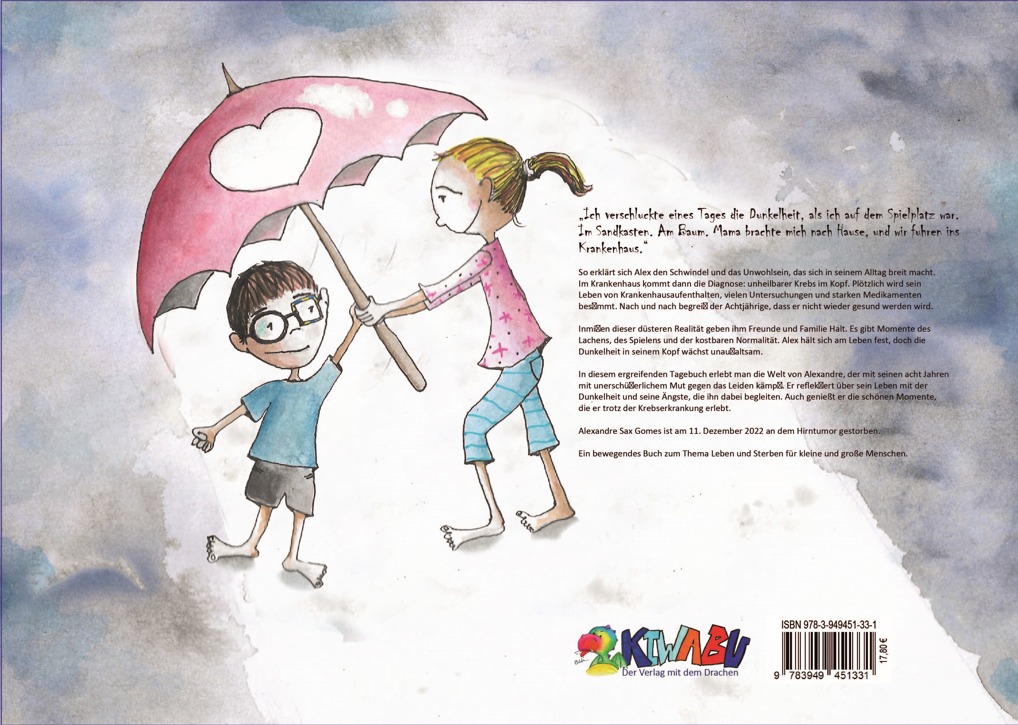 Das zweite Buch von Alexandre Sax Gomes und seiner Mutter Lila Sax dos Santos Gomes ist ein Tagebuch zum Thema Leben und Sterben. Es bietet einen sicheren Raum vor allem auch für Kinder, um über Emotionen wie Angst, Trauer und Freude zu sprechen und sie zu verarbeiten. Es kann ihnen helfen, ihre eigenen Gefühle besser zu verstehen und auszudrücken.Außerdem ermöglicht es Kindern, Empathie für Menschen zu entwickeln, die mit schweren Krankheiten oder anderen Herausforderungen konfrontiert sind. Sie können sich in Alexandre hineinversetzen und seine Emotionen und Gedanken besser verstehen. Alexandre dient als inspirierendes Vorbild für Kinder, die lernen können, dass es wichtig ist, trotz Herausforderungen positiv zu bleiben und nach vorne zu schauen.