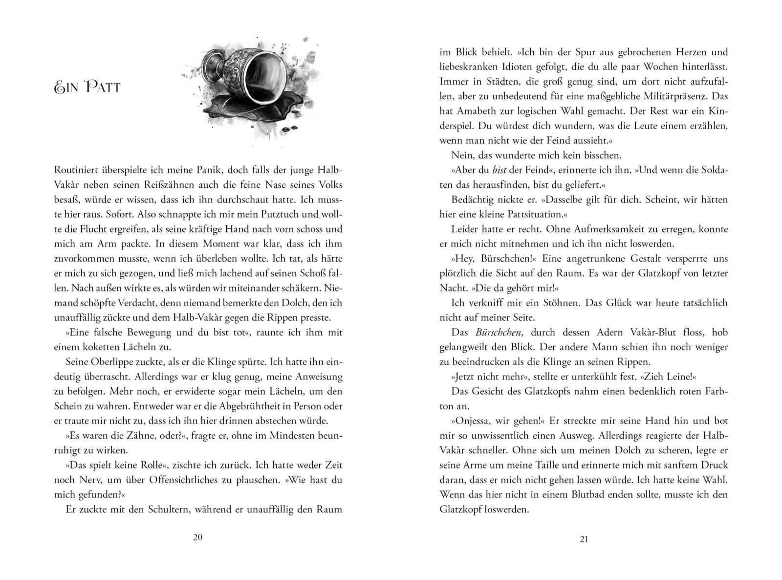 Seit fast drei Jahren ist Sintha nun auf der Flucht vor Arez. Der Krieg hat den Kontinent fest im Griff und die Vakàr kämpfen an vorderster Front für die magische Welt. Doch als Arez tödlich verwundet wird, muss sich Sintha entscheiden: Entweder sie stellt sich dem, was sie ihm angetan hat, oder der Mann, den sie liebt, wird sterben.