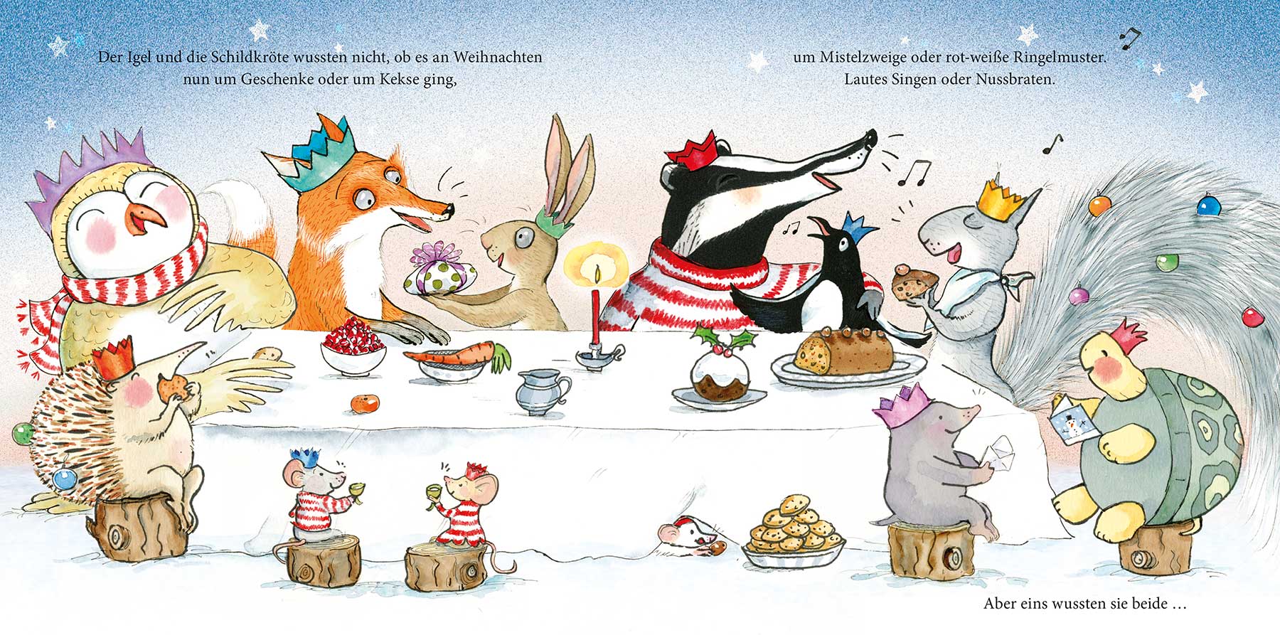 | Schlagworte | Bilderbuch • Dekoration • Essen • Fest • Gemeinschaft • Geschenke • Igel • Liebe • Schildkröte • Singen • Tiere • Weihnachten • Zusammensein |