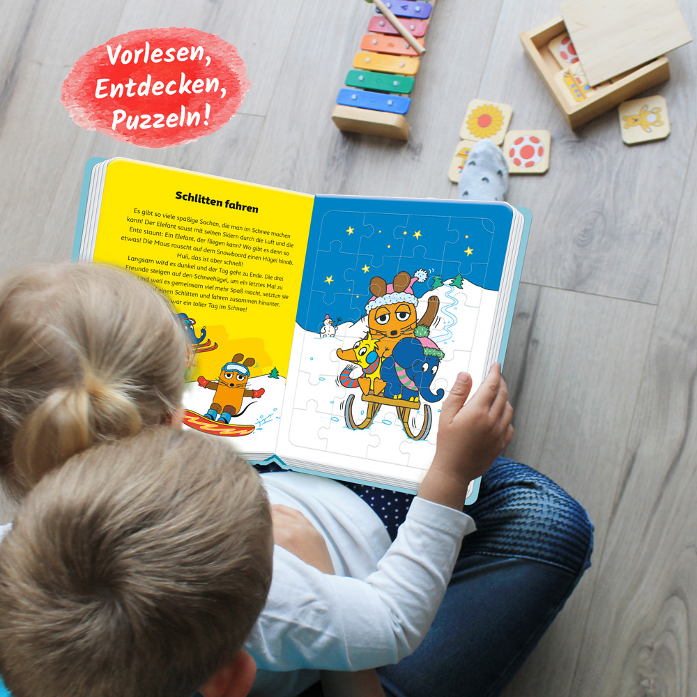 Ein großes Puzzlebuch von der Maus und ihren Freunden! Hinter jedem der 4 Puzzles verstecken sich lustige Bilder sowie interessante Fakten rund um Winter, Schnee und Eis. Ein fröhlicher Puzzlespaß für kleine Fans von der cleveren Maus, zum Puzzeln und Entdecken!