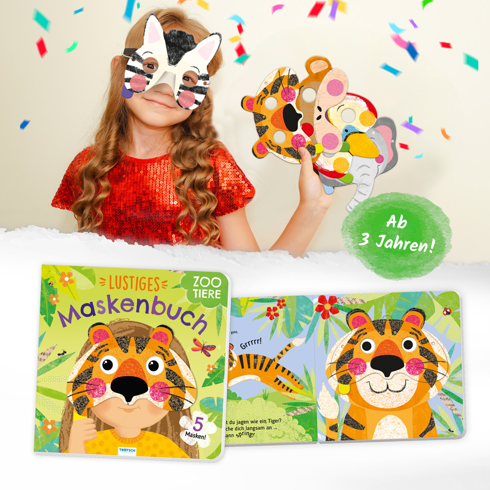 TRÖTSCH - Lustiges Maskenbuch "Zootiere" | Interaktives Pappenbuch mit 5 herausnehmbaren Zootier-Masken zum Spielen und Verkleiden | Mit eingängigen Reimen für fantasievolle Abenteuer | Ab 1 Jahr