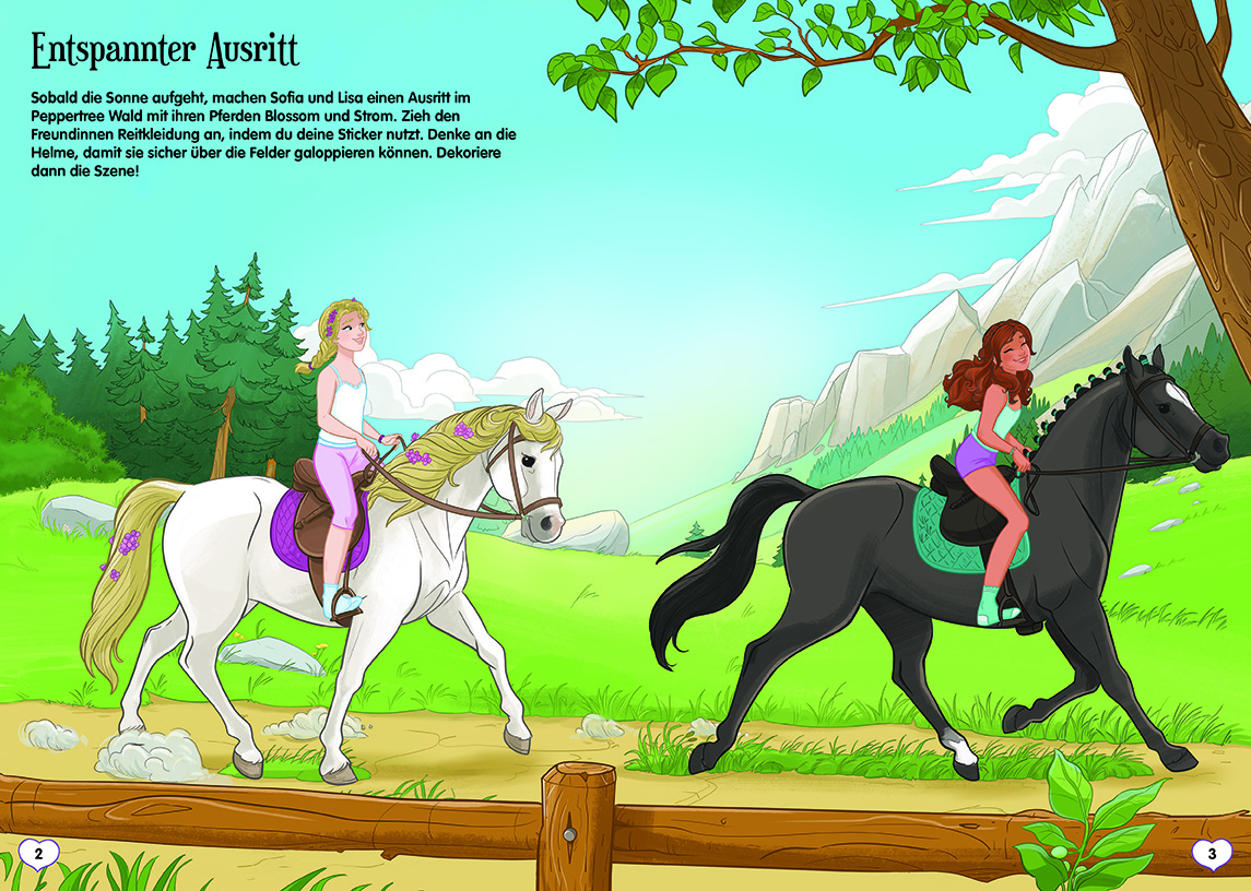 Funkelnde Sticker ergänzen die attraktiven Outfits der HORSE CLUB Freundinnen!