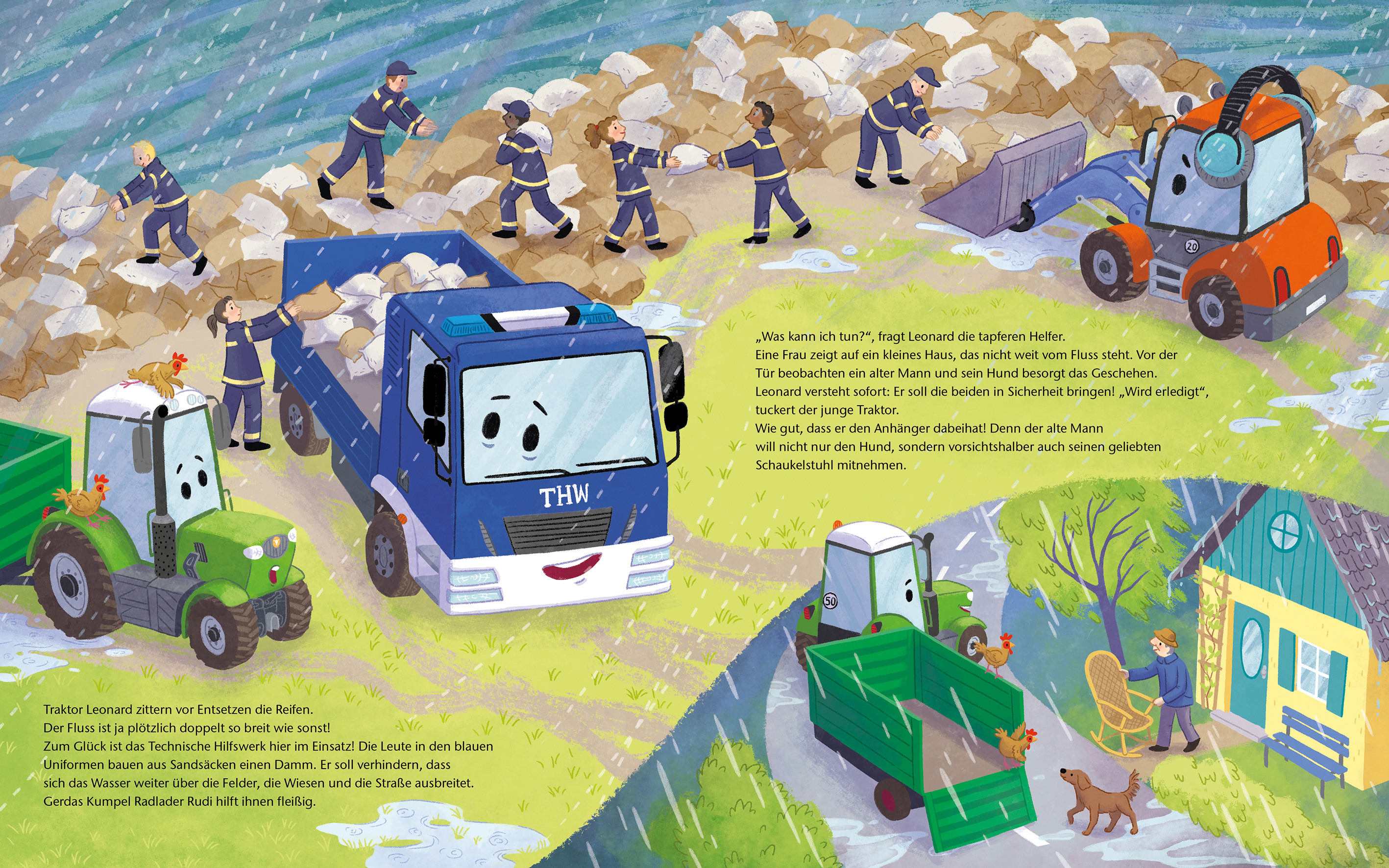 | Schlagworte | Abenteuer • Einsatzfahrzeuge • Feuerwehr • Freundschaft • Hiflsbereitschaft • Hochwasser • Kinderbuch • Landwirtschaft • Leben auf dem Bauernhof • Mut • Notfall • Rettung • Sachinfos • Teamwork • Technik • THW • Trecker • Unwetter • Vorlesen • Zusammenhalt |