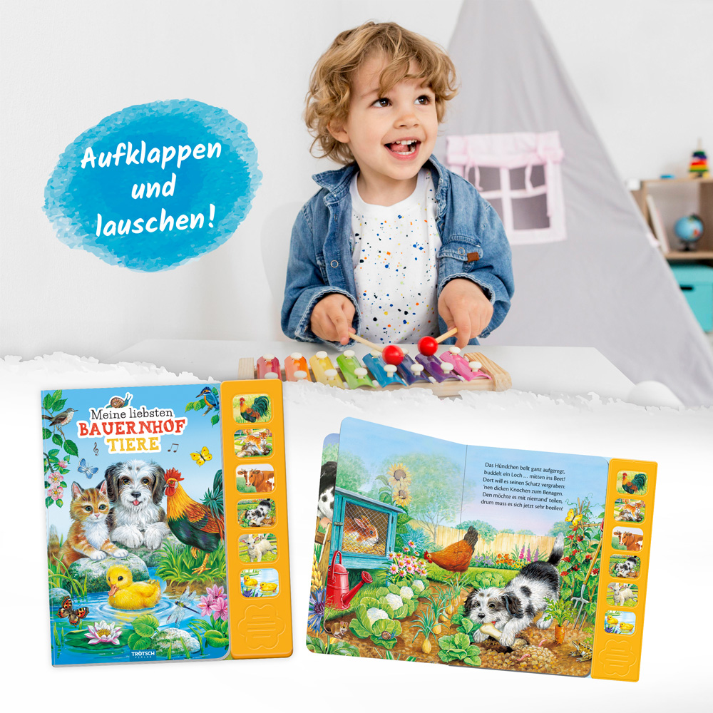Fröhliche Reimgeschichten aus dem Leben sechs verschiedener Bauernhoftiere. Mit liebevollen Illustrationen und echten Tierstimmen. Zum Vorlesen, Anschauen und Hinhören.