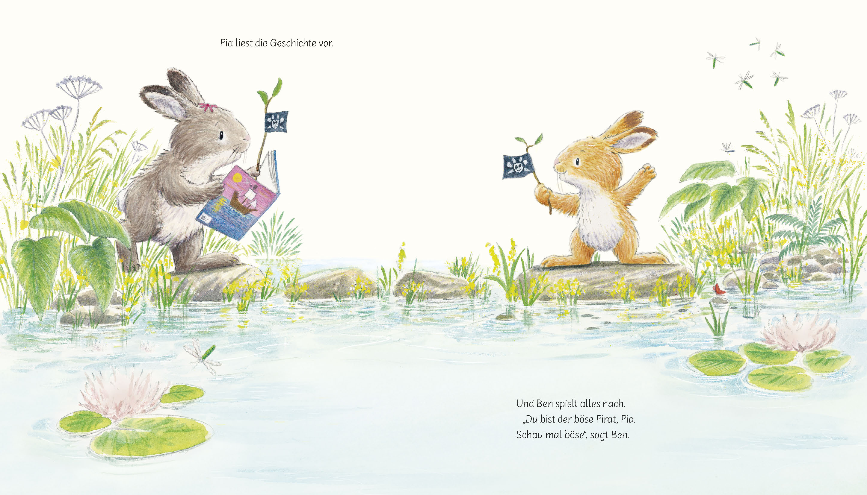 Ein wunderschönes Bilderbuch ab 4 Jahren über zwei Häschen, die erleben, wie spannend und abenteuerlich es ist, gemeinsam ein Buch zu lesen und voller Fantasie neue Welten zu entdecken.