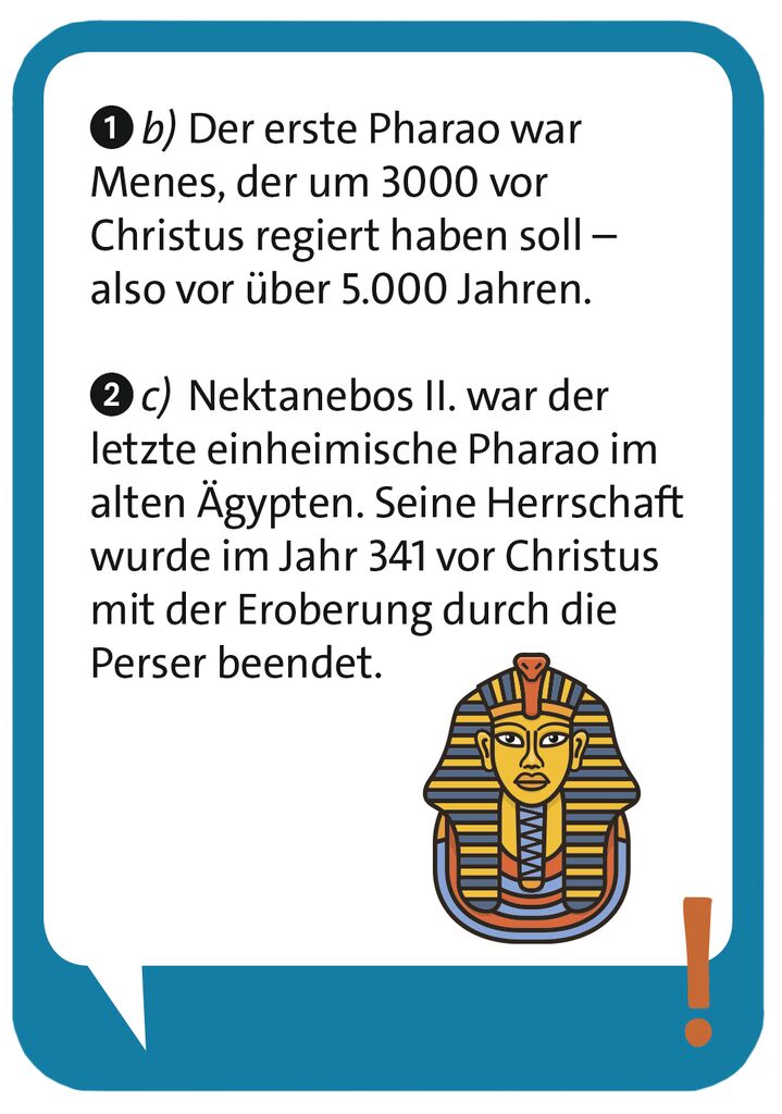 Wie konnten Forschende die Hieroglyphen entschlüsseln? Und wozu haben die Menschen damals die Pyramiden gebaut? 100 spannende Fragen und Fakten rund ums alte Ägypten warten in diesem neuen Pocket Quiz junior. Egal ob im Team oder allein, der pfiffige Rätselspaß eignet sich für Kinder ab 8 Jahren. Durch das handliche Format können kleine Ratefüchse jederzeit unterwegs oder auch zu Hause ihr Wissen unter Beweis stellen.