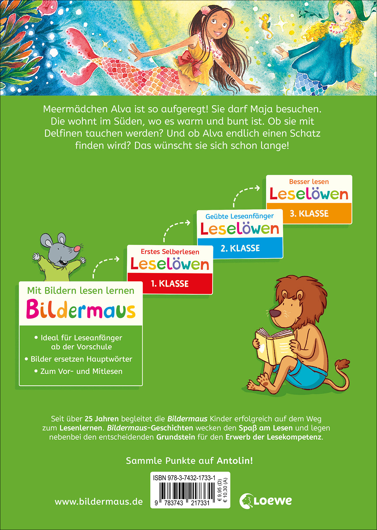 Meermädchen Alva ist so aufgeregt! Sie darf Maja besuchen. Die wohnt im Süden, wo es warm und bunt ist. Ob sie mit Delfinen tauchen werden? Und ob Alva endlich einen Schatz finden wird? Das wünscht sie sich schon lange!