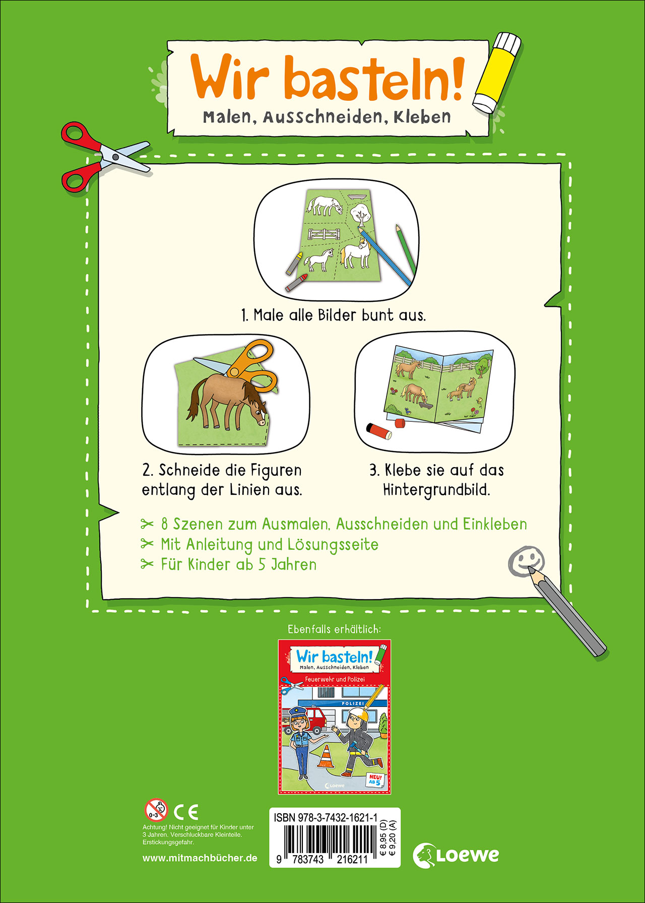 Dieses Bastelbuch für Kinder ab 5 Jahren lässt die Herzen von Bastelfans höherschlagen. Zuerst werden die Motive bunt ausgemalt, dann entlang der Umrisslinien ausgeschnitten und anschließend in die Szene eingeklebt. Das Buch enthält eine Anleitung und Abbildungen der fertigen Motive. So macht Basteln richtig Spaß und ganz nebenbei werden auch noch Motorik und Kreativität gefördert.