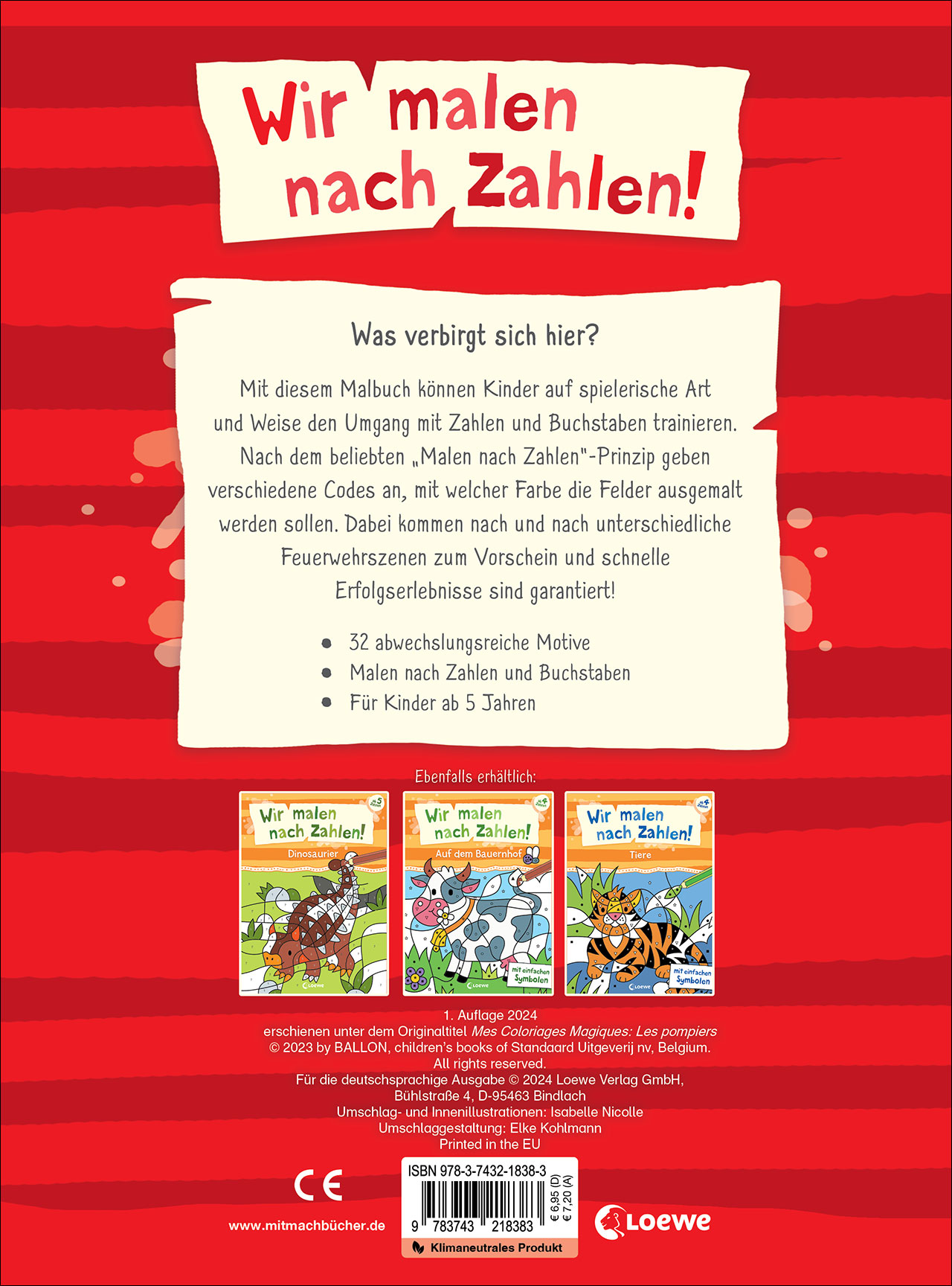 Mit diesem Malbuch können Kinder auf spielerische Art und Weise den Umgang mit Zahlen und Buchstaben trainieren. Nach dem beliebten "Malen nach Zahlen"-Prinzip geben verschiedene Codes an, mit welcher Farbe die Felder ausgemalt werden sollen. Dabei kommen nach und nach unterschiedliche Feuerwehrszenen zum Vorschein und schnelle Erfolgserlebnisse sind garantiert!