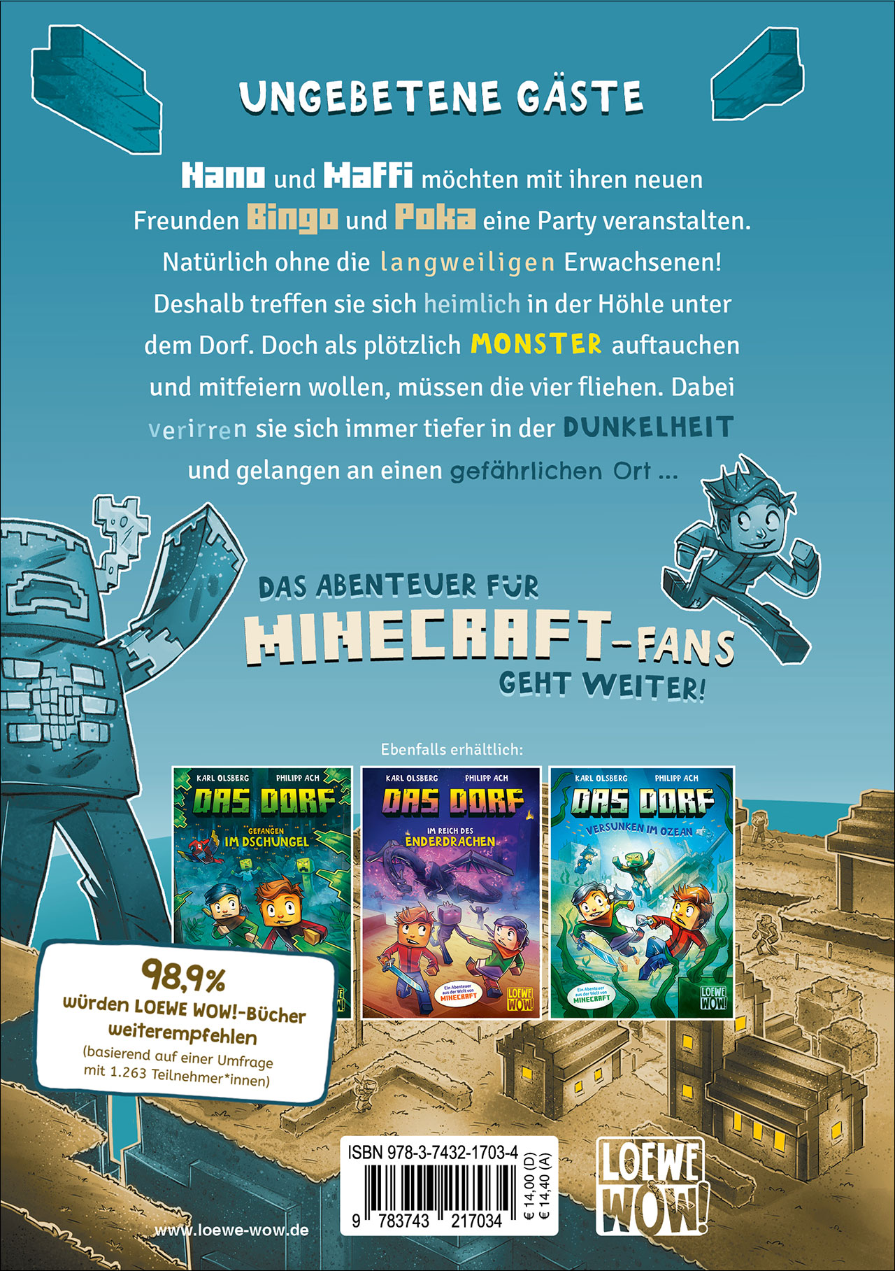 | Schlagworte | Abenteuergeschichten für Kinder ab 8 Jahren • Bücher wie Der Golemkönig • Bücher wie Minecraft - Die Insel • Bücher wie Minecraft - Die Suche nach dem Diamant • Bücher wie Tagebuch eines Kriegers • Bücher wie Wie ich die Welt rettete • Das Dorf Reihe • Illustrierte Kinderbücher • Karl Olsberg Bücher • Kinderbücher ab 8 Jahren • Kinderbücher für Gamer • Loewe Wow • Minecraft Abenteuergeschichte • Spiegel-Bestsellerautor Karl Olsberg • Wenig Text viele Bilder |