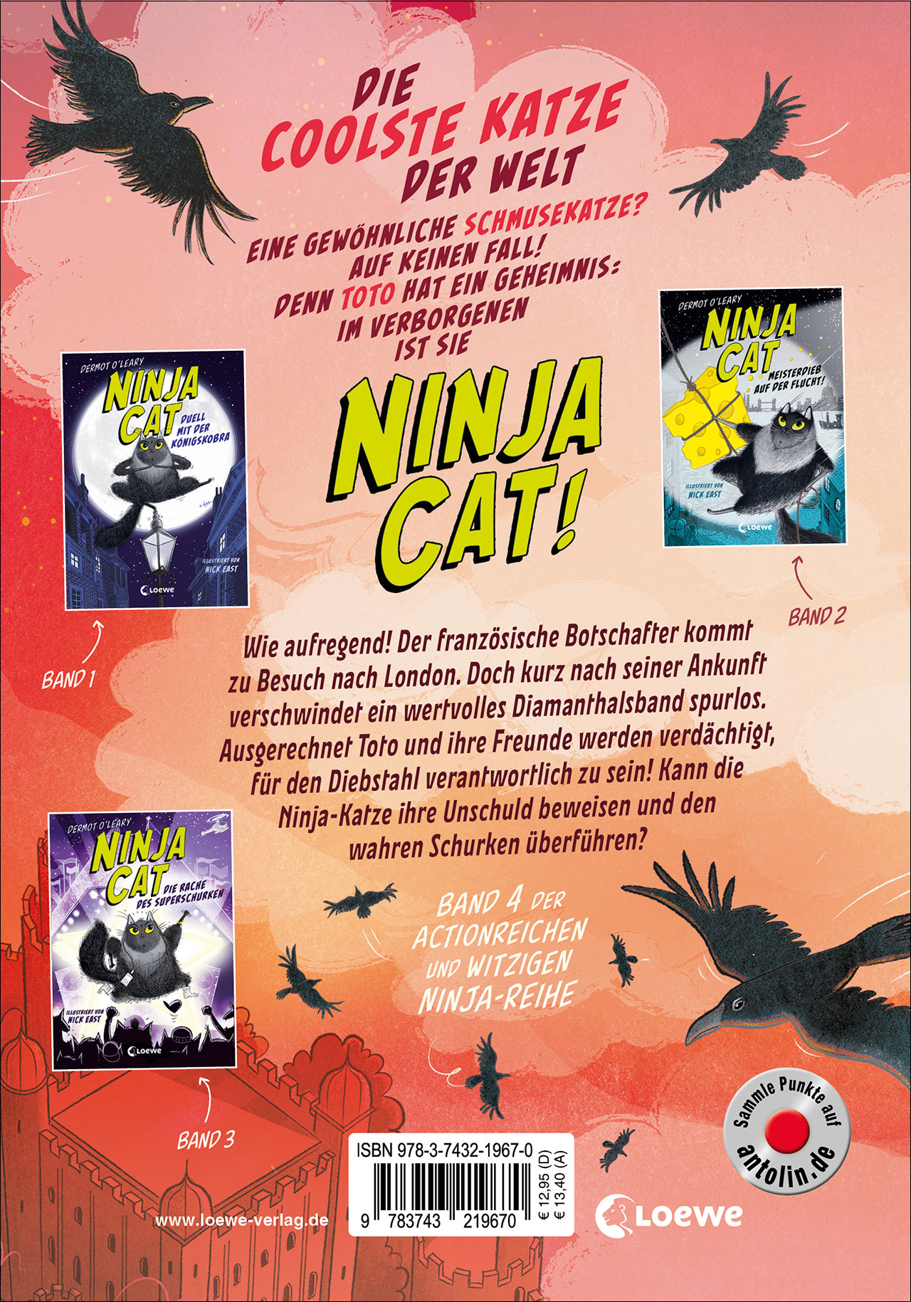 Wie aufregend! Der französische Botschafter kommt zu Besuch nach London. Doch kurz nach seiner Ankunft verschwindet ein wertvolles Diamanthalsband spurlos. Ausgerechnet Toto und ihre Freunde werden verdächtigt, für den Diebstahl verantwortlich zu sein! Kann die Ninja-Katze ihre Unschuld beweisen und den wahren Schurken überführen?