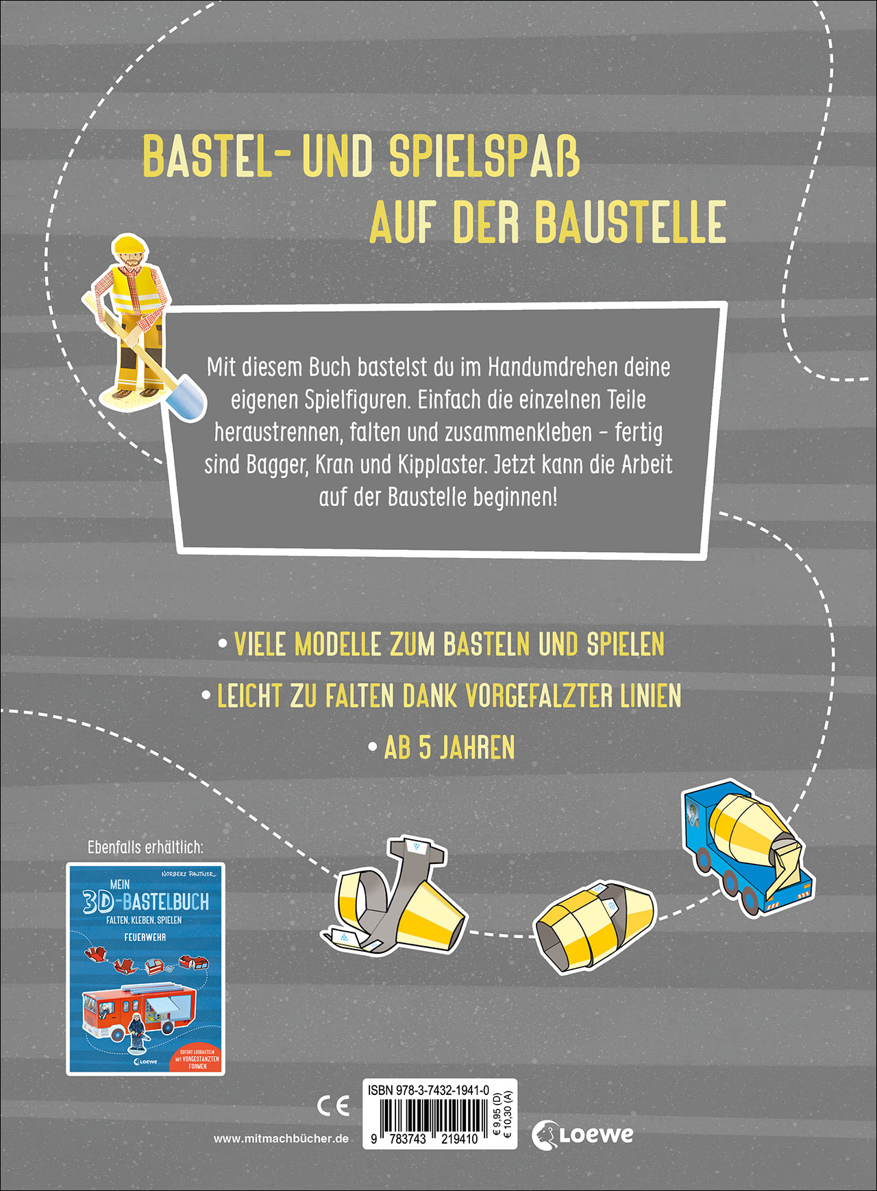 | Schlagworte | 3D Bastelbögen • 3D Basteln für Kinder ab 5 Jahren • Ausschneiden Kleben Basteln • Bastelbuch Baustelle • Bastelbuch für Kinder ab 5 Jahren • Bastelbuch Vorschule • Bastelvorlagen • Baustelle Bastelbücher • Beschäftigung für Kinder ab 5 Jahren • Feinmotorik fördern • Konzentration fördern |