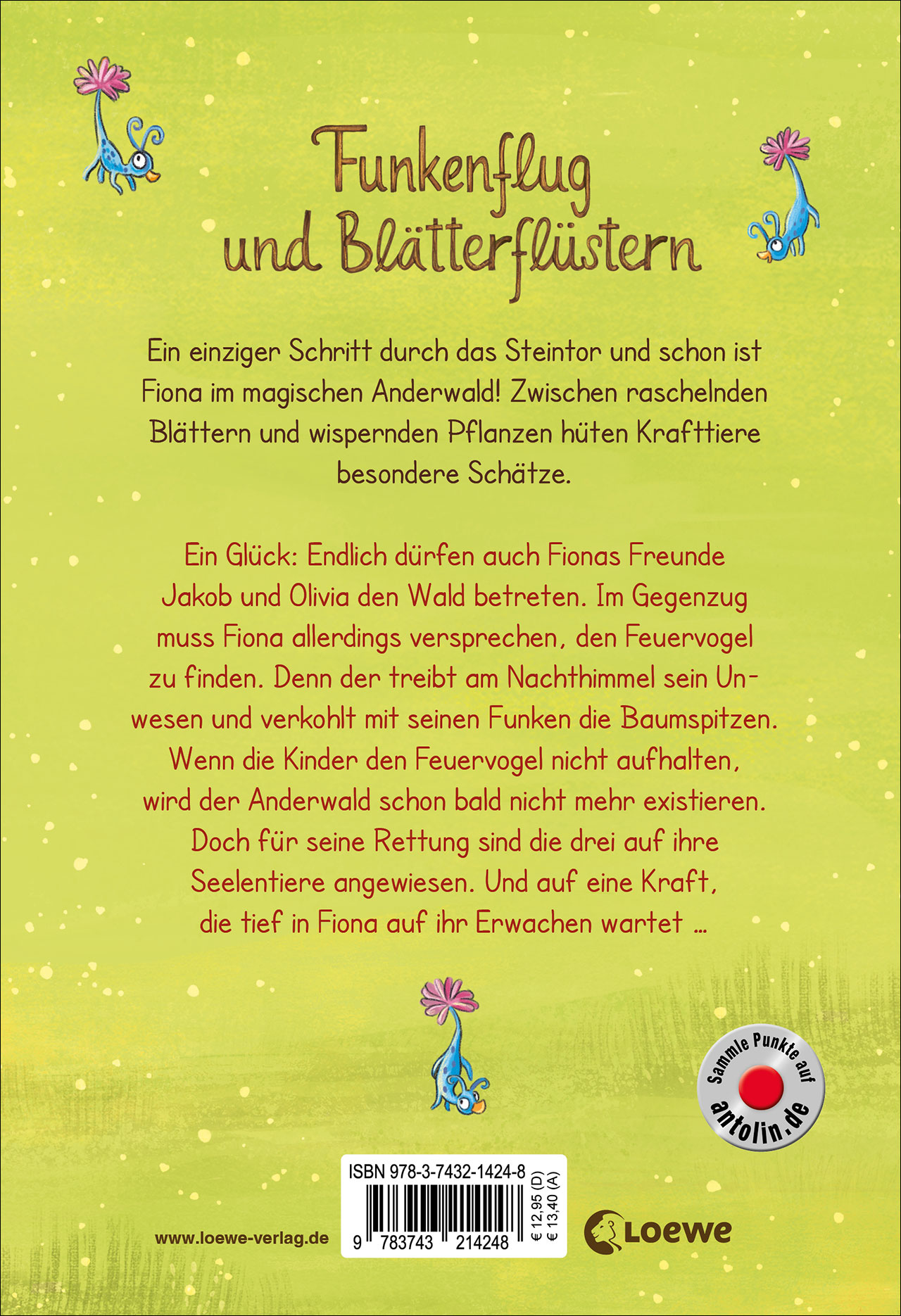 Ein Glück: Endlich dürfen auch Fionas Freunde Jakob und Olivia den Wald betreten. Im Gegenzug muss Fiona allerdings versprechen, den Feuervogel zu finden. Das Wesen treibt am Nachthimmel sein Unwesen und verkohlt mit seinen Funken die Baumspitzen. Wenn die Kinder es nicht schaffen, wird der Anderwald schon bald nicht mehr existieren. Doch für seine Rettung sind die drei auf ihre Seelentiere angewiesen. Und auf eine Kraft, die tief in Fiona auf ihr Erwachen wartet ...