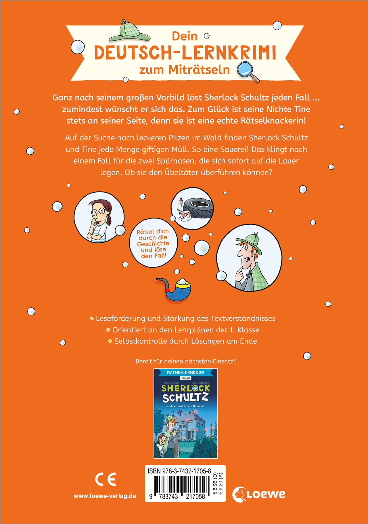 Mit einer spannenden Krimigeschichte, farbigen Illustrationen und spaßigen Rätseln wird mit diesem Lernkrimi das Wissen aus dem Deutschunterricht aus der 1. Klasse spielerisch vertieft und die Konzentration und das Textverständnis von Kindern ab 6 Jahren gefördert. Die Erstlesegeschichte um den witzigen Möchtegerndetektiven Sherlock Schultz und seine Nichte Tine fördert die Lesekompetenz, die Kombinationsfähigkeit und bietet dabei jede Menge Abwechslung.