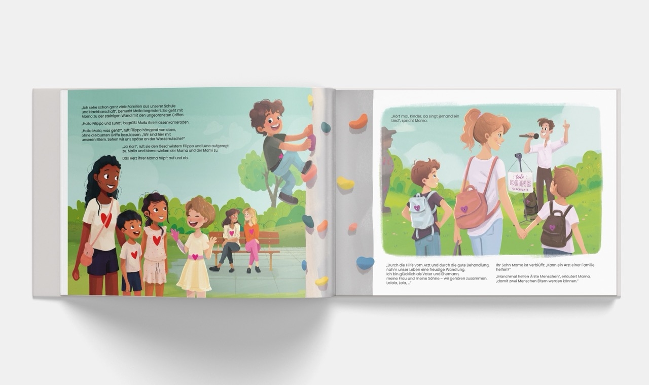 - Umgang mit Ablehnung: Maila und Momo spazieren durch einen Park, als ein fremder Mann sie mit den Worten "Ihr seid keine richtige Familie." beschimpft. Gemeinsam mit ihrer Mama stärken sie ihren Zusammenhalt und ihre Offenheit als Familie.