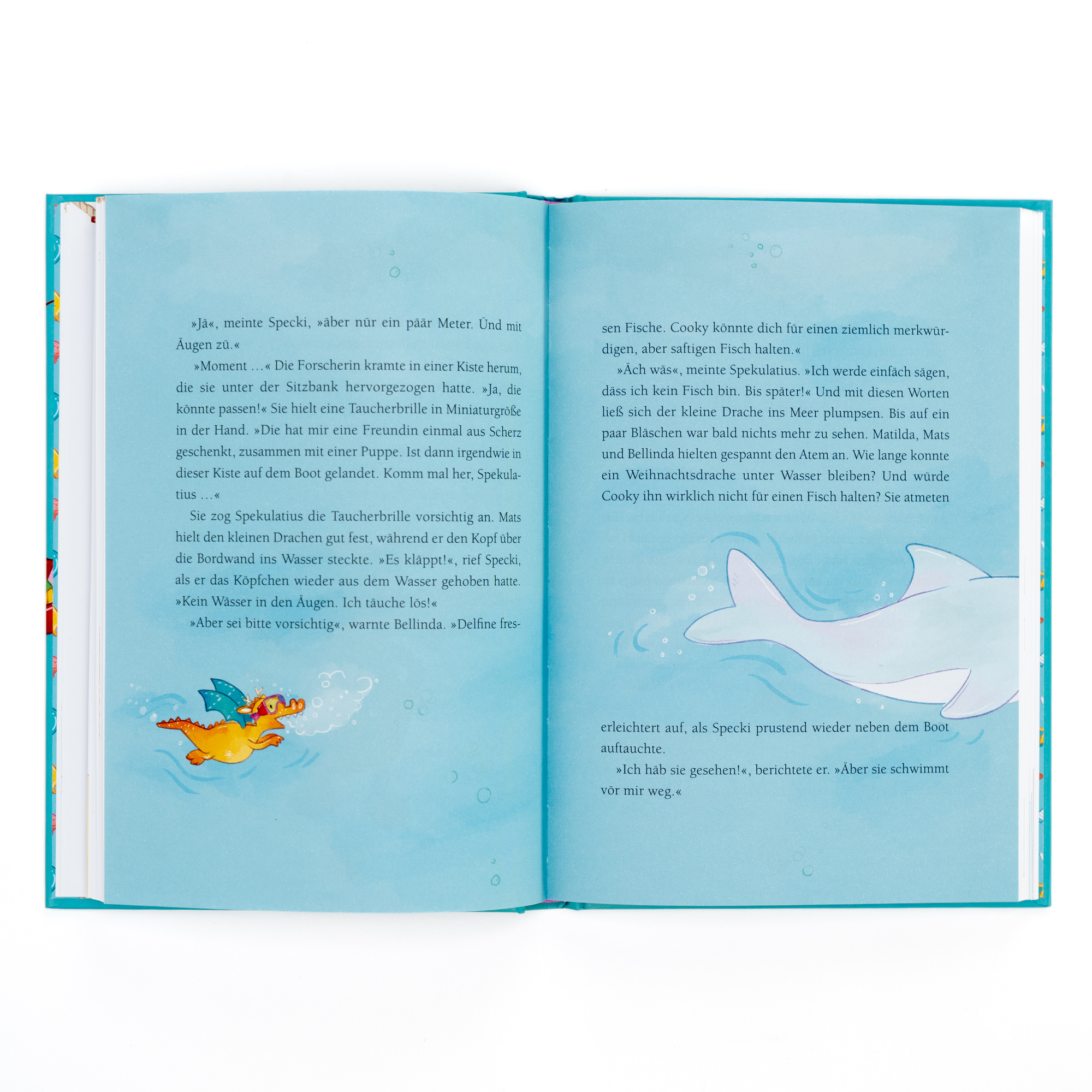 Pünktlich zu den Sommerferien taucht Spekulatius wieder bei seinen Freunden auf. Zusammen mit Mats und Matilda fährt er in den Campingurlaub ans Meer. Hier entdeckt Specki seine neue große Leidenschaft: Eis! Wer viel Eis essen will, braucht viel Hunger, und den bekommt man am besten durch "Spört", wie Specki es nennt. Also nichts wie rein ins Wasser! In der Bucht ist aber auch ein kleiner Delfin unterwegs, der nicht den Weg zurück zu seiner Delfinschule findet. Mats, Matilda und Spekulatius müssen sich etwas ausdenken, um den Delfin zu retten, bevor er von der Bande von Beachmaster Bill gefangen wird.