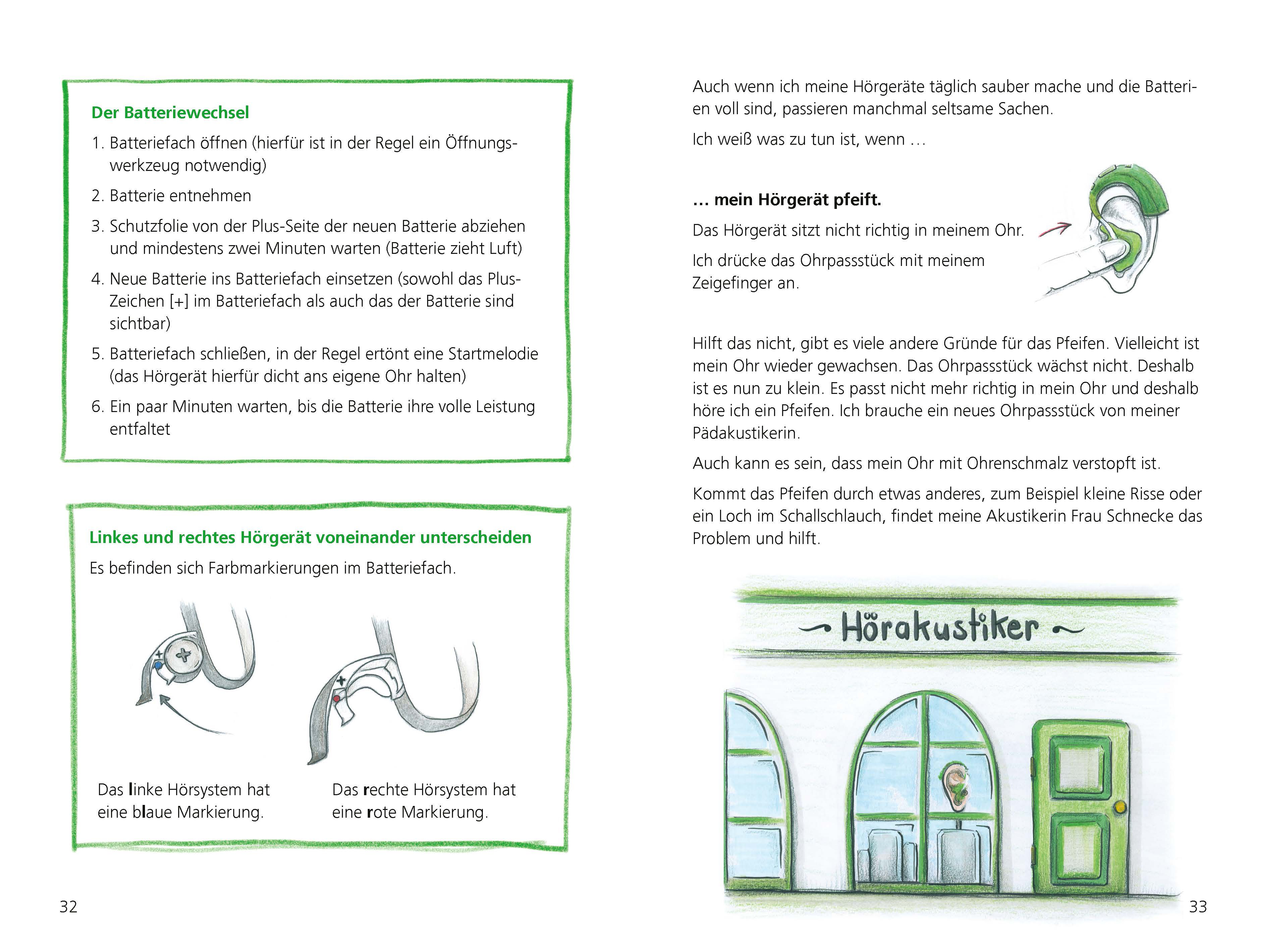 In diesem Buch für Kinder und alle, die sie begleiten, wird anhand liebevoller Bilder und einfacher Texte der kindliche Alltag mit Hörgeräten aufgezeigt. Tiefergehende Informationen für Erwachsene ergänzen die Bildergeschichte. In diesem interaktiven Buch werden hörgeschädigte Kinder zum selbstständigen Umgang mit den Hörhilfen angeleitet. Zudem helfen Wimmelbilder dabei, die sprachliche und emotionale Entwicklung der Kinder altersgerecht und spielerisch zu fördern. Für Kinder ab 3 Jahren.