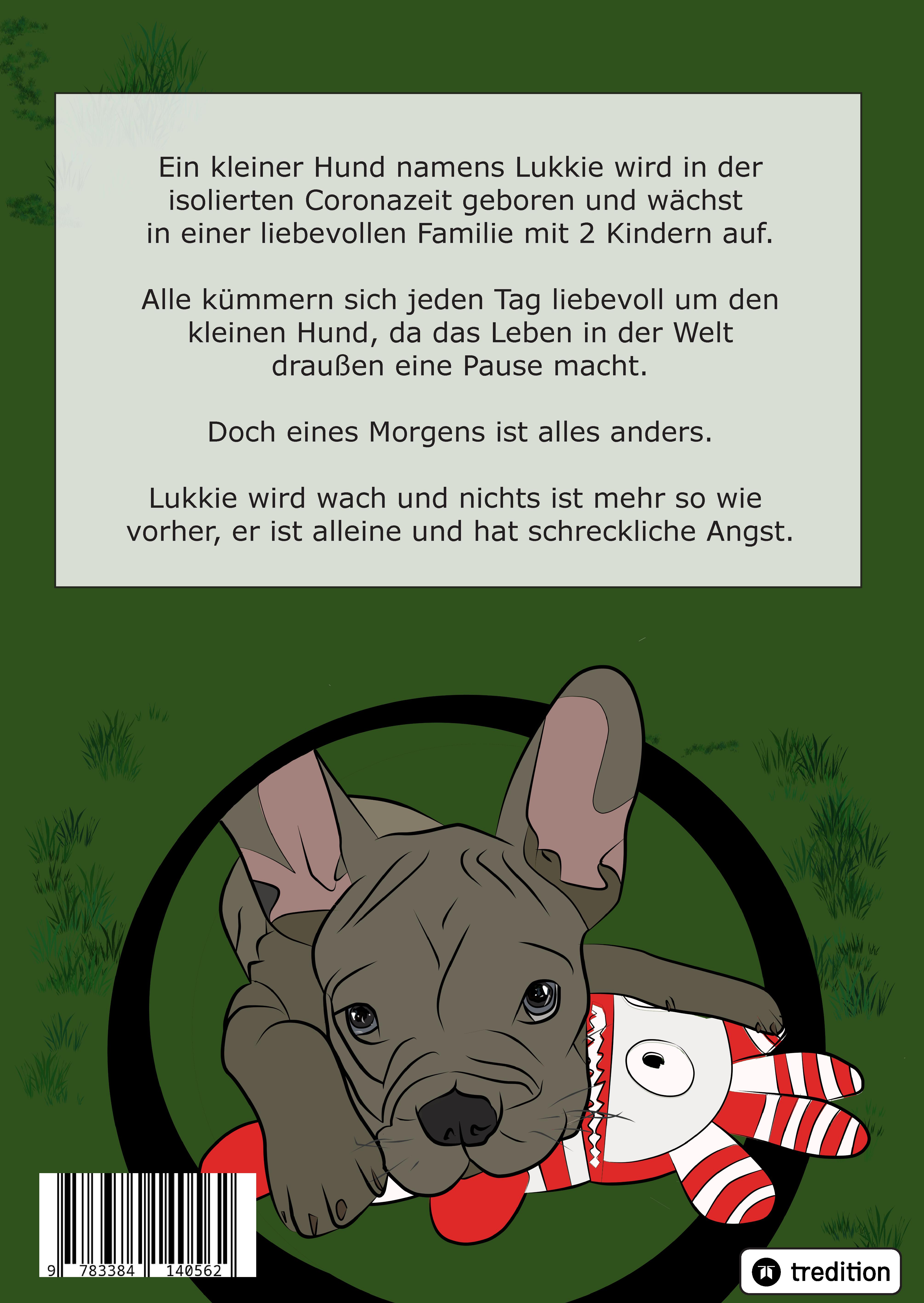 Lukkie wird wach und nichts ist mehr so wie vorher, er ist alleine und hat schreckliche Angst.Eine kleine französische Bulldogge zieht bei seiner neuen Familie am Waldrand ein, zur Familie gehören: Vater, Mutter, Lotte und der kleine Otto.Wahrend der Isolation durch das Coronavirus verbringt die Familie viel Zeit miteinander.Bis Lukkie eines Morgens wach wird und die heile Welt in seinem zu Hause zerbricht.Die Schule, die Arbeit und der Alltag vor dem Corona-Virus hat wieder angefangen und Lukkie ist die meiste Zeit allein,bis er eines Tages im Garten neue Freunde kennenlernt, die so gar nicht sind wie er.Mit jeder neuen Freundschaft wird Lukkie mutiger und vergisst seine Angst und Unsicherheit.Er lernt das nicht nur die Familie ihm Sicherheit bieten kann.Jede Freundschaft ist in einem Kapitel beschrieben und zeigt die Charaktereigenschaften der neuen Freunde.Die Geschichte zeigt, dass jede Form von Freundschaft existieren kann.Selbst die größten Feindschaften im Tierreich , wie bei Hund und Katze, oder Katze und Vogel können mit Vertrauen und Mut eine wunderbare Freundschaft entstehen lassen.Durch Gemeinsamkeiten wird das Eis gebrochen, denn Neugier und Spaß helfen oft die Unsicherheit und die Angst bei Seite zu schieben und den Kontakt zu wagen.Der Spruch: "Zusammen sind wir stark", trifft hier zu.