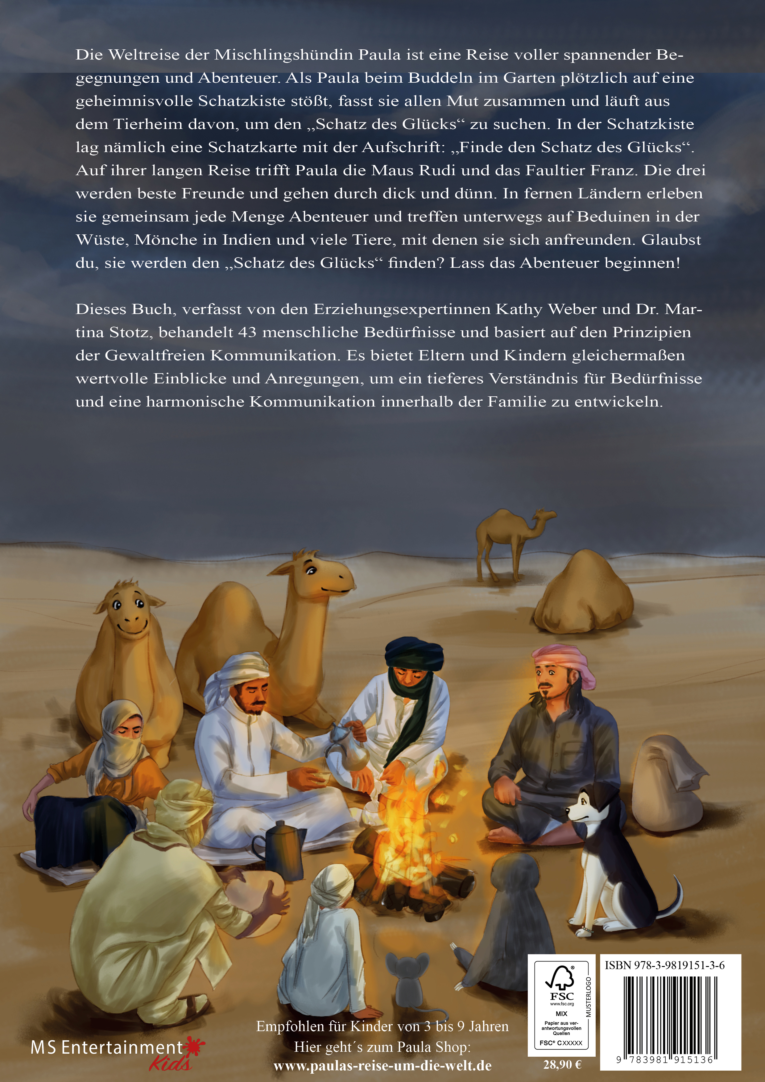 Die Hauptfiguren als Stofftiere verstärken die Bindung zu den Protagonisten und deren Geschichten. Die beigefügte Weltkarte, eine Handpuppe, sowie 18 Postkarten machen aus „Paulas Reise um die Welt“ eine interaktive Erfahrung, die eure Kinder über viele Jahre begleiten wird.