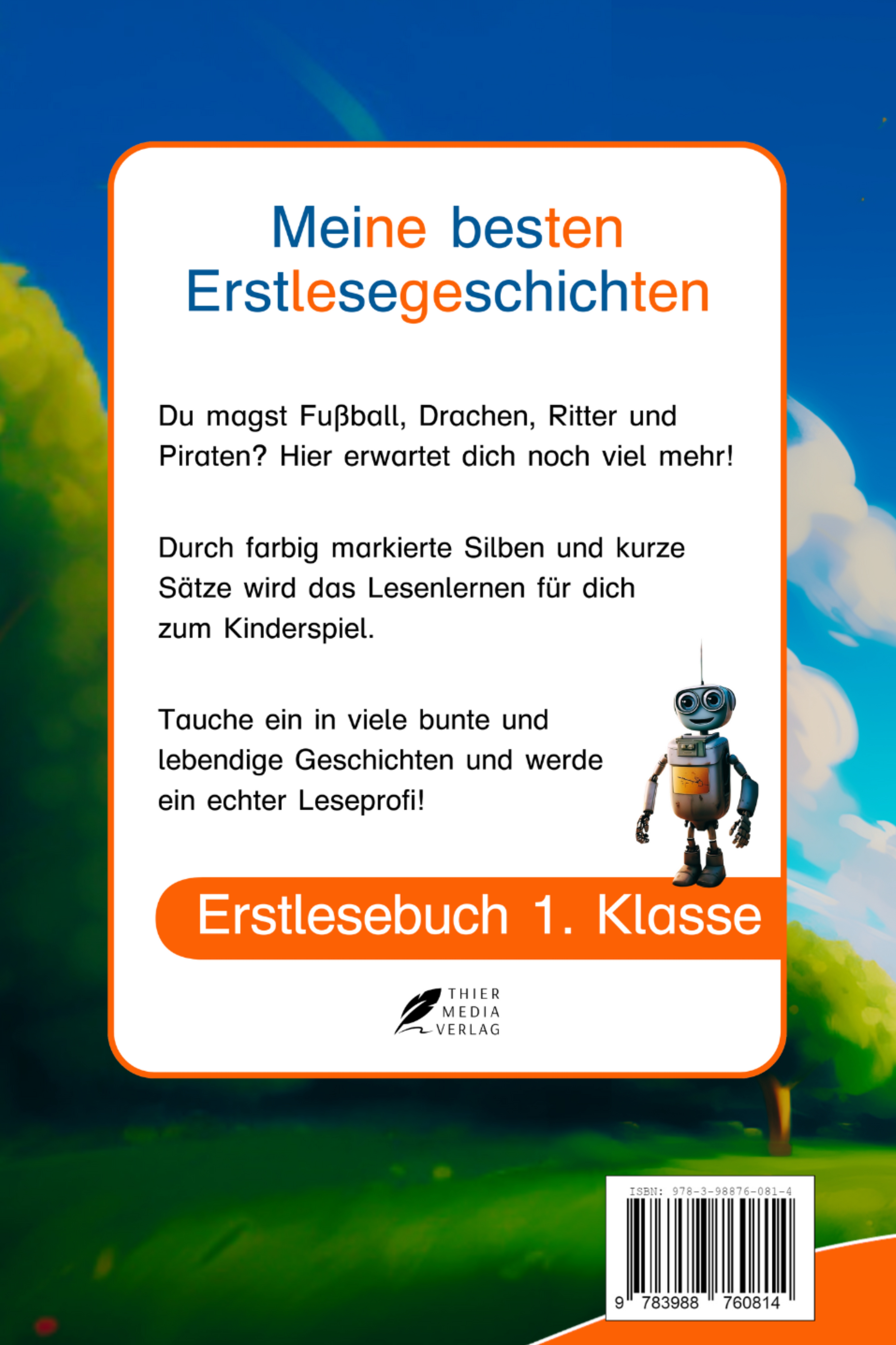 Meine besten Erstlesegeschichten Suchen Sie ein gutes Buch für Ihr Kind in der 1. Klasse?Liest Ihr Kind bereits einfache Wörter und kurze Sätze?Mag Ihr Kind u.a. Fußball, Drachen, Ritter und Piraten?Falls ja, dann ist dieses Erstlesebuch genau das Richtige!Durch farbig markierte Silben und kurze Sätze wird das Lesenlernen zum Kinderspiel.Unsere bunten und lebendigen Geschichten animieren Kinder zum Weiterlesen.Beobachten Sie, wie Ihr Kind langsam zu einem echten Leseprofi wird. Hinweis:Unsere Lesebücher sind in der Regel genderneutral. Bei diesem Buch haben wir uns jedoch bewusst dafür entschieden, es in Aufmachung und Ansprache speziell an Jungen zu richten. Die Figuren in den Geschichten sind daher größtenteils männlich.