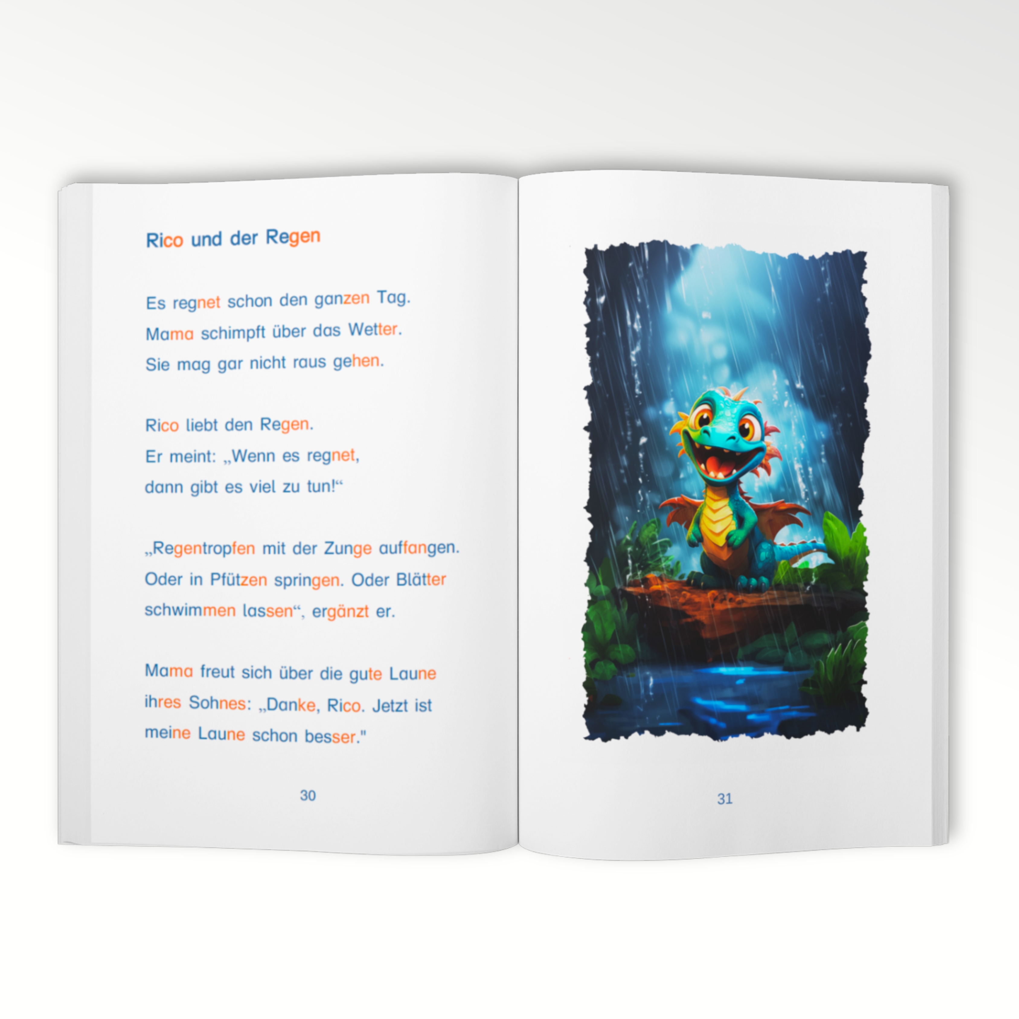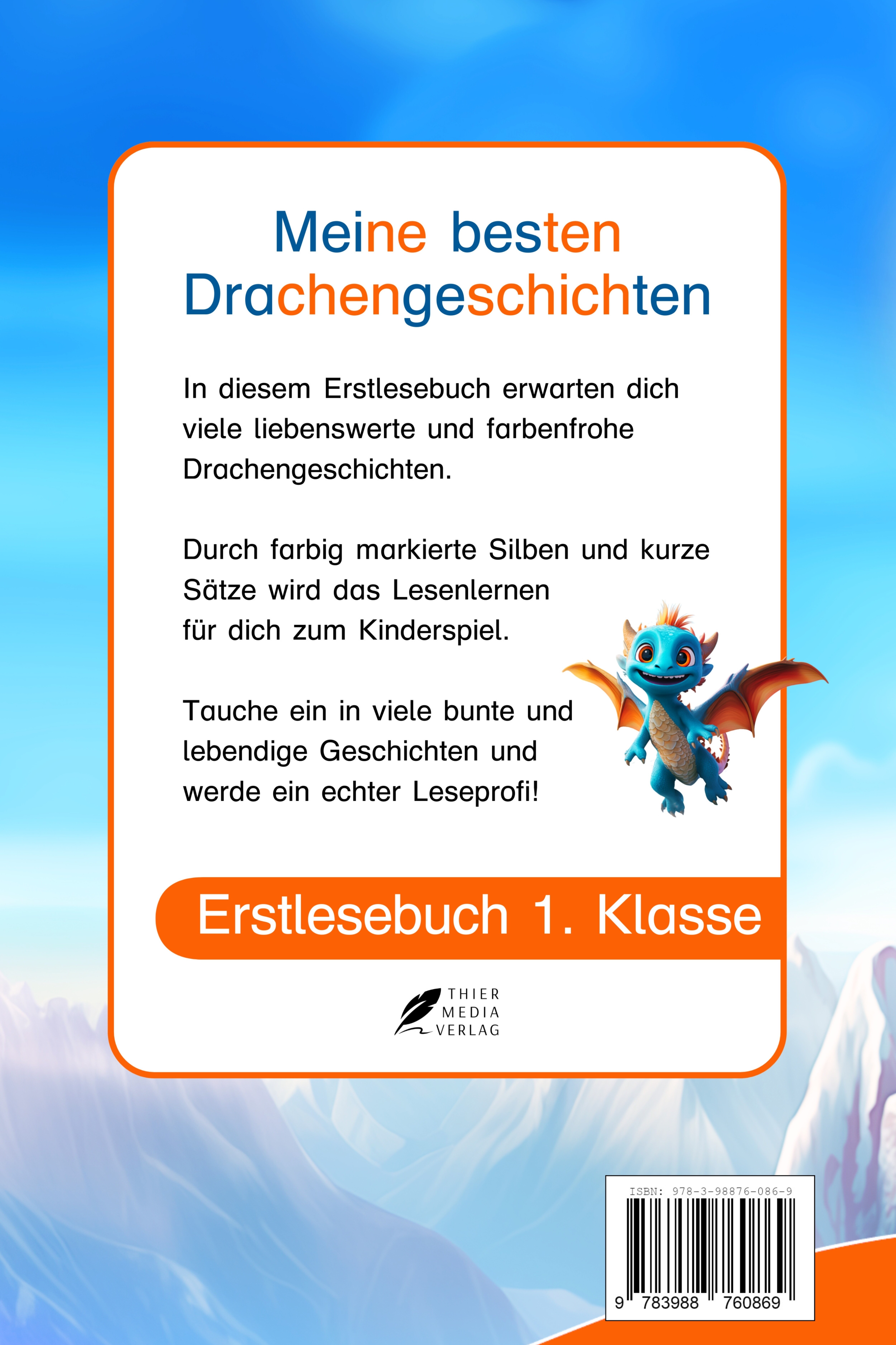 Meine besten DrachengeschichtenSuchen Sie ein gutes Buch für Ihr Kind in der 1. Klasse?Liest Ihr Kind bereits einfache Wörter und kurze Sätze?Mag Ihr Kind farbenfrohe und liebenswerte Drachengeschichten?Falls ja, dann ist dieses Erstlesebuch genau das Richtige!Durch farbig markierte Silben und kurze Sätze wird das Lesenlernen zum Kinderspiel.Unsere bunten und lebendigen Geschichten animieren Kinder zum Weiterlesen.Beobachten Sie, wie Ihr Kind langsam zu einem echten Leseprofi wird.