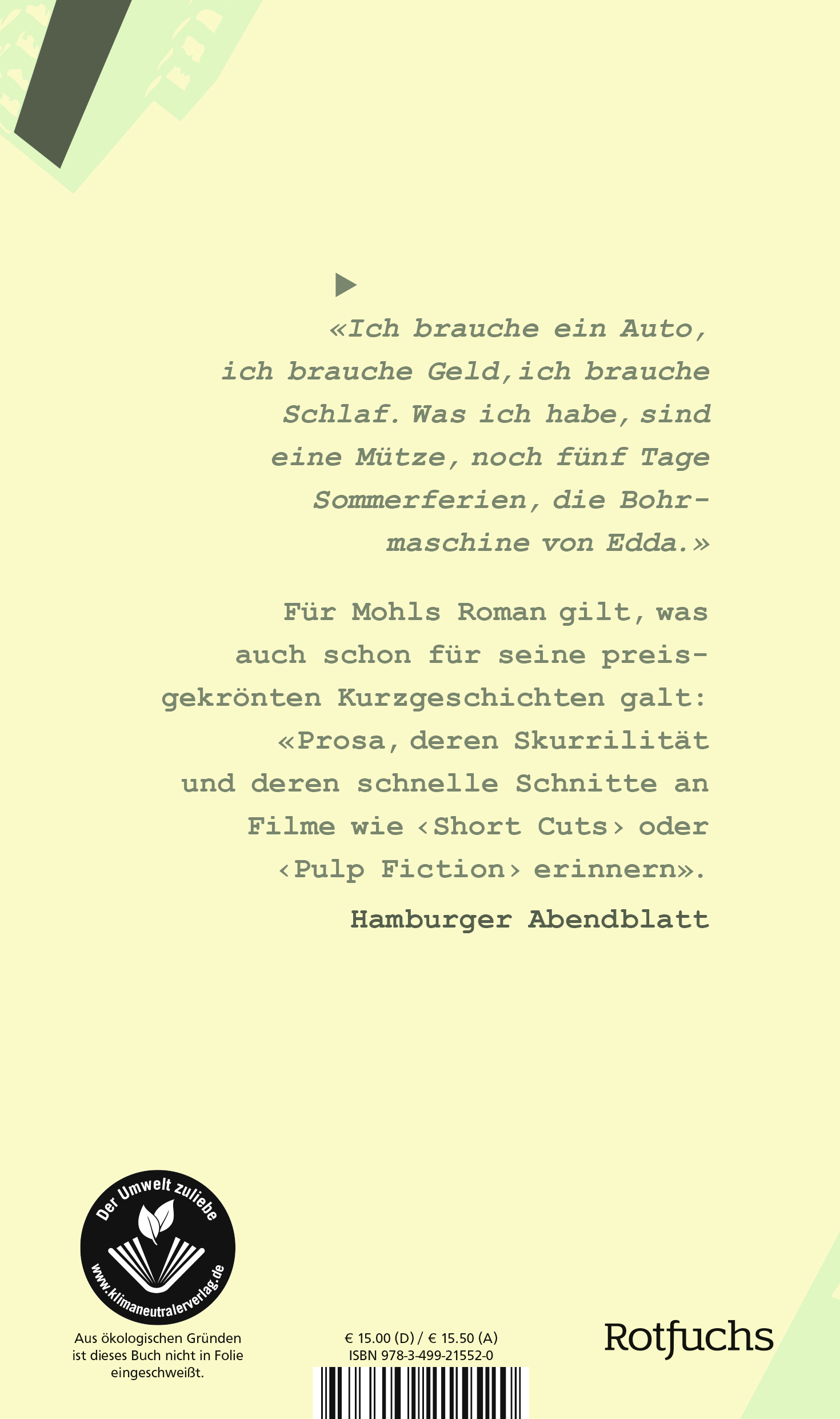 Stell dir vor, du bist 17 und lebst in den Hochhäusern am Stadtrand. Der Sommer ist heiß. Es ist Mittwochnacht, als dir Jackie den Kopf verdreht. Im Freibad. Fuchsrotes Haar. Sandbraune Haut. Stell dir vor, wie dir die Funken aus den Fingern sprühen vor Glück. Und plötzlich fliegt die Welt aus den Angeln: Zöllner erwürgt seine Frau. Edda, die 21-Jährige aus der Videothek, stellt dir nach. Mauser steigt mit Kondor in den Ring. Immer wieder meinst du, diesen Indianer mit der Adlerfederkrone zu sehen. Und dann zieht zum Showdown ein geradezu biblisches Gewitter auf - fühlt es sich so an, erwachsen zu werden?