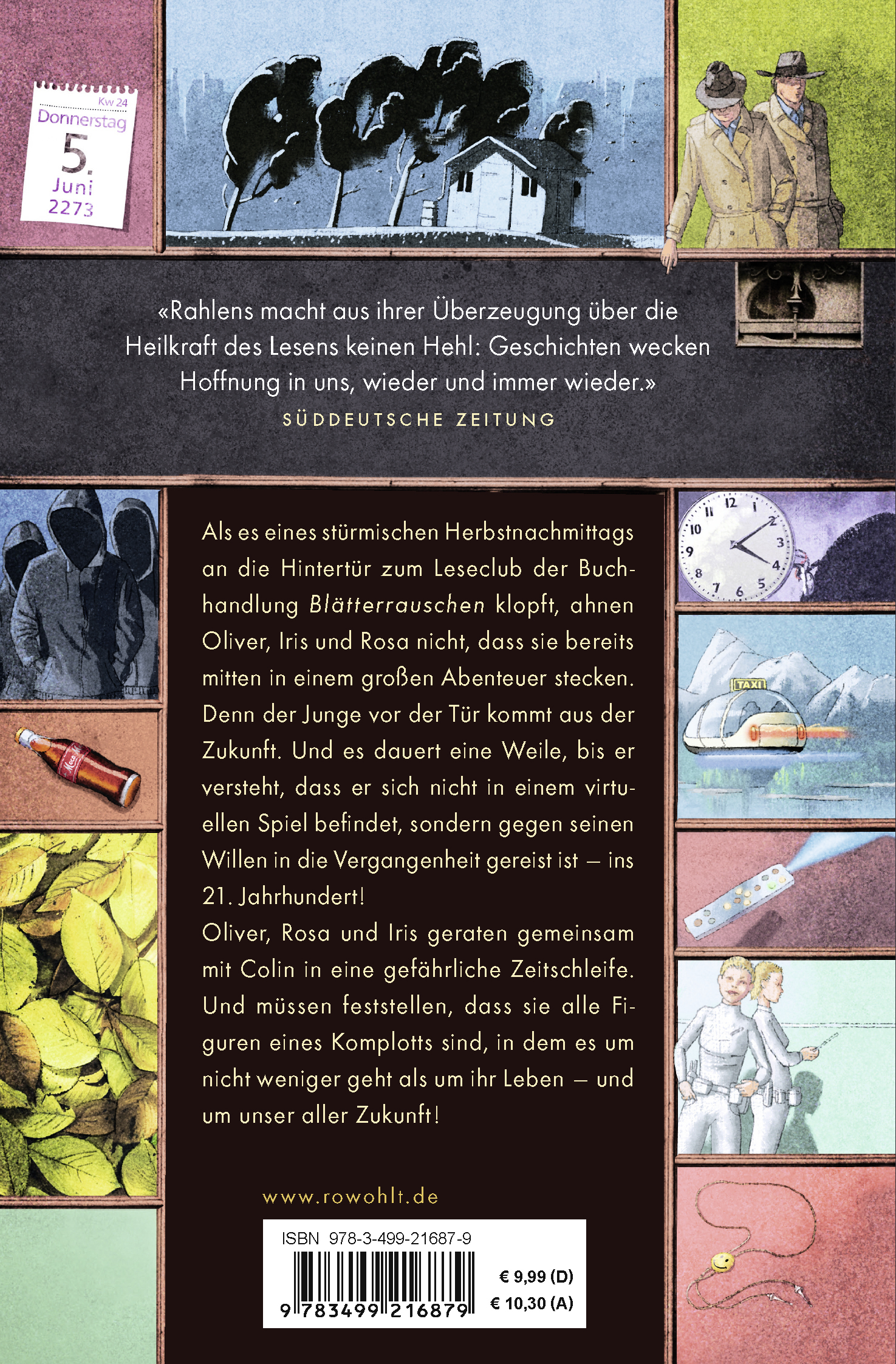 Als es eines stürmischen Herbstnachmittags an die Hintertür zum Leseclub der Buchhandlung Blätterrauschen klopft, ahnen Oliver, Iris und Rosa nicht, dass sie bereits mitten in einem großen Abenteuer stecken. Denn der Junge vor der Tür kommt aus der Zukunft. Und es dauert eine Weile, bis er versteht, dass er sich nicht in einem virtuellen Spiel befindet, sondern gegen seinen Willen in die Vergangenheit gereist ist - ins 21. Jahrhundert!