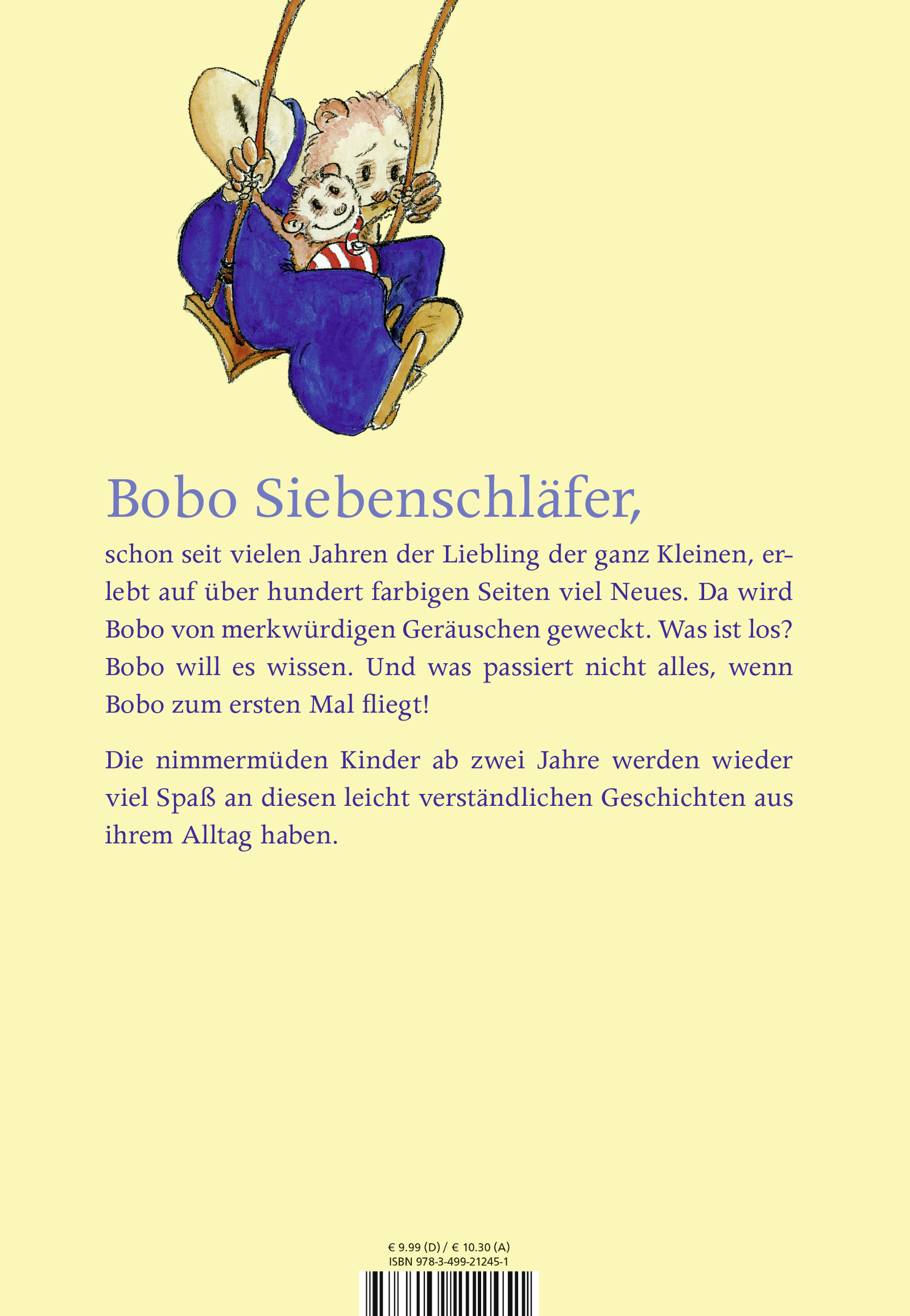 Bobo Siebenschläfer, schon seit vielen Jahren der Liebling der ganz Kleinen, erlebt auf über hundert farbigen Seiten viel Neues. Da wird Bobo von merkwürdigen Geräuschen geweckt. Was ist los? Bobo will es wissen. Und was passiert nicht alles, wenn Bobo zum ersten Mal fliegt! Die nimmermüden Kinder ab zwei werden wieder viel Spaß an diesen leicht verständlichen Geschichten aus ihrem Alltag haben.