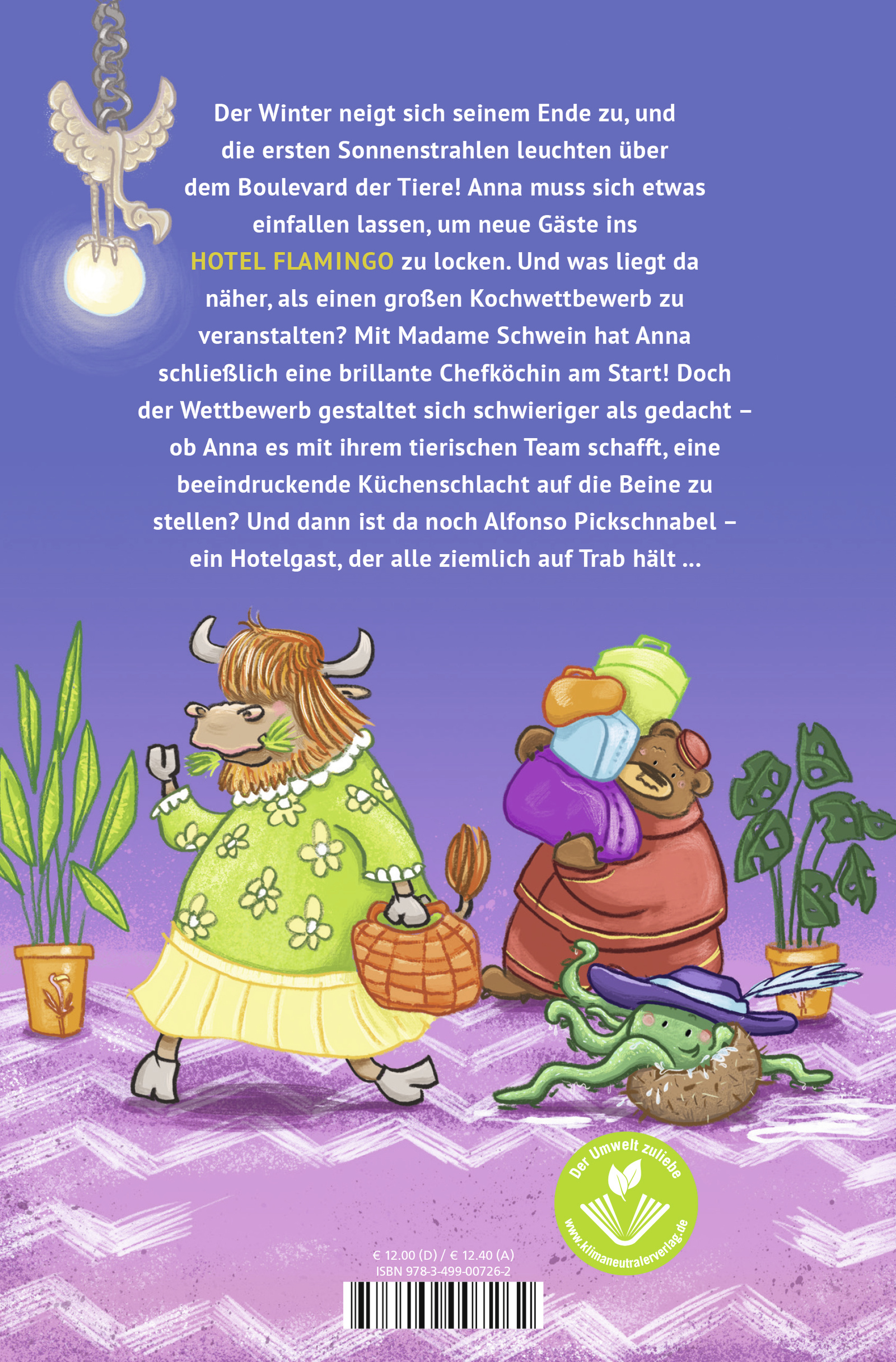 Der Winter neigt sich seinem Ende zu, und die ersten Sonnenstrahlen leuchten über dem Boulevard der Tiere! Anna muss sich etwas einfallen lassen, um neue Gäste ins Hotel Flamingo zu locken. Und was liegt da näher, als einen großen Kochwettbewerb zu veranstalten? Mit Madame Schwein hat Anna schließlich eine brillante Chefköchin am Start! Doch der Wettbewerb gestaltet sich schwieriger als gedacht - ob Anna es mit ihrem tierischen Team schafft, eine beeindruckende Küchenschlacht auf die Beine zu stellen? Und dann ist da noch Alfonso Pickschnabel - ein Hotelgast, der alle ziemlich auf Trab hält ...