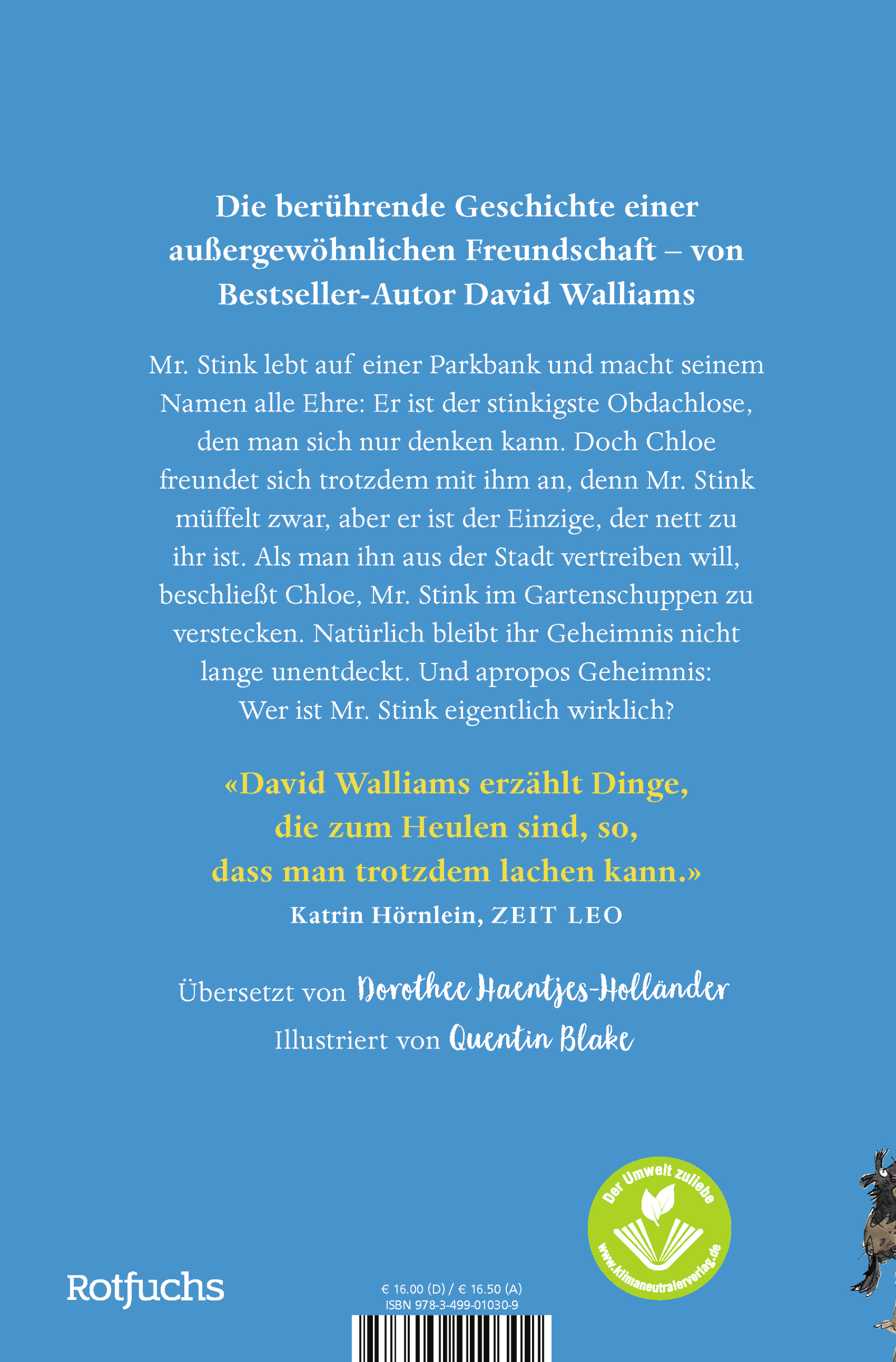 Mr. Stink lebt auf einer Parkbank und macht seinem Namen alle Ehre: Er ist der stinkigste Stinker, den man sich vorstellen kann. Das hält Chloe jedoch nicht davon ab, sich mit ihm anzufreunden. Klar, er müffelt, aber er ist der Einzige, der nett zu ihr ist. Also beschließt sie, Mr. Stink im Schuppen ihrer Eltern zu verstecken. Natürlich bleibt der Obdachlose in seiner Duftwolke nicht lange unentdeckt ...