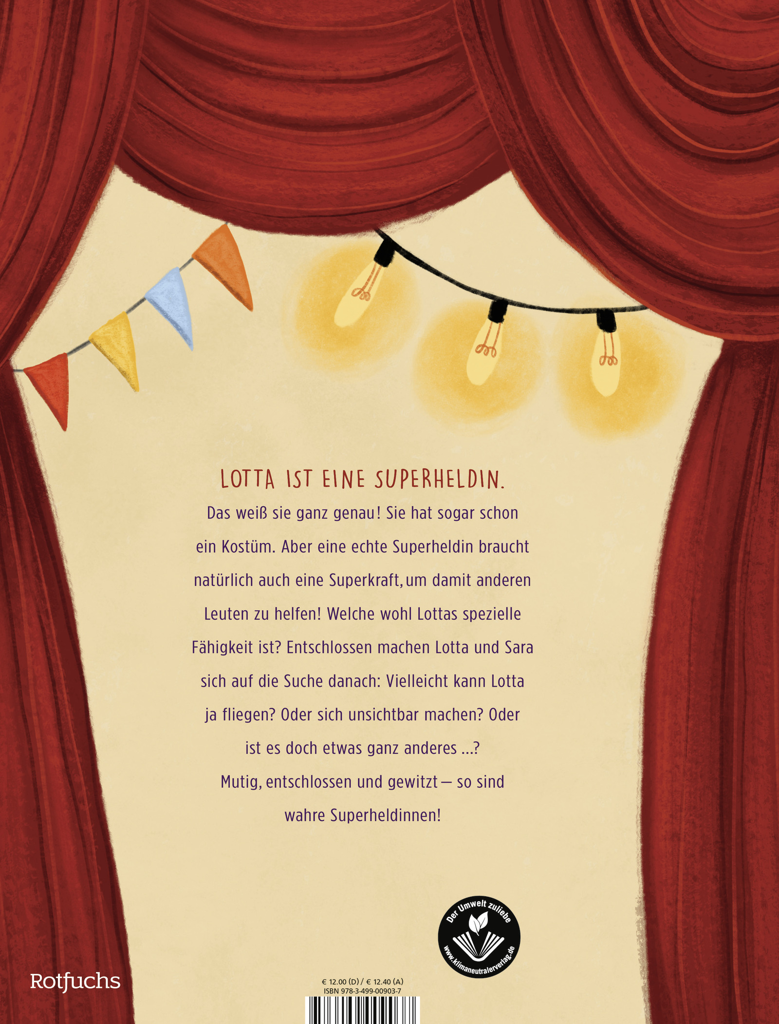 Lotta ist eine Superheldin. Das weiß sie ganz genau! Sie hat sogar schon ein Kostüm. Aber eine echte Superheldin braucht natürlich auch eine Superkraft, um damit anderen Leuten zu helfen! Welche wohl Lottas spezielle Fähigkeit ist? Vielleicht kann sie ja fliegen? Oder sich unsichtbar machen? Oder ist es doch etwas ganz anderes ...
