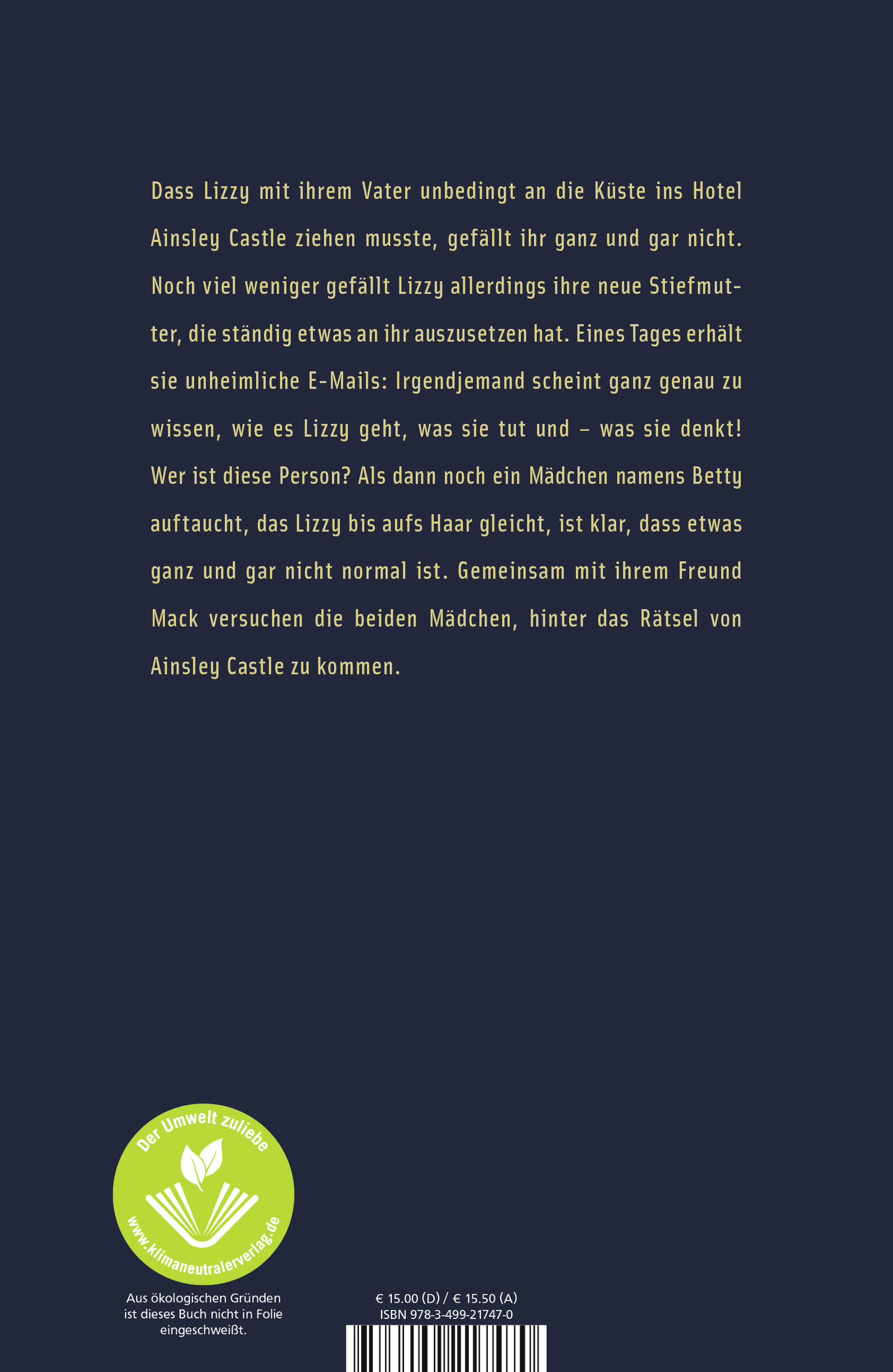 Dass Lizzy mit ihrem Vater unbedingt an die Küste ins Hotel Ainsley Castle ziehen musste, gefällt ihr ganz und gar nicht. Noch viel weniger gefällt Lizzy allerdings ihre neue Stiefmutter, die ständig etwas an ihr auszusetzen hat. Eines Tages erhält sie unheimliche E-Mails: Irgendjemand scheint ganz genau zu wissen, wie es Lizzy geht, was sie tut und - was sie denkt! Wer ist diese Person? Als dann noch ein Mädchen namens Betty auftaucht, das Lizzy bis aufs Haar gleicht, ist klar, dass etwas ganz und gar nicht normal ist. Gemeinsam mit ihrem Freund Mack versuchen die beiden Mädchen, hinter das Rätsel von Ainsley Castle zu kommen.