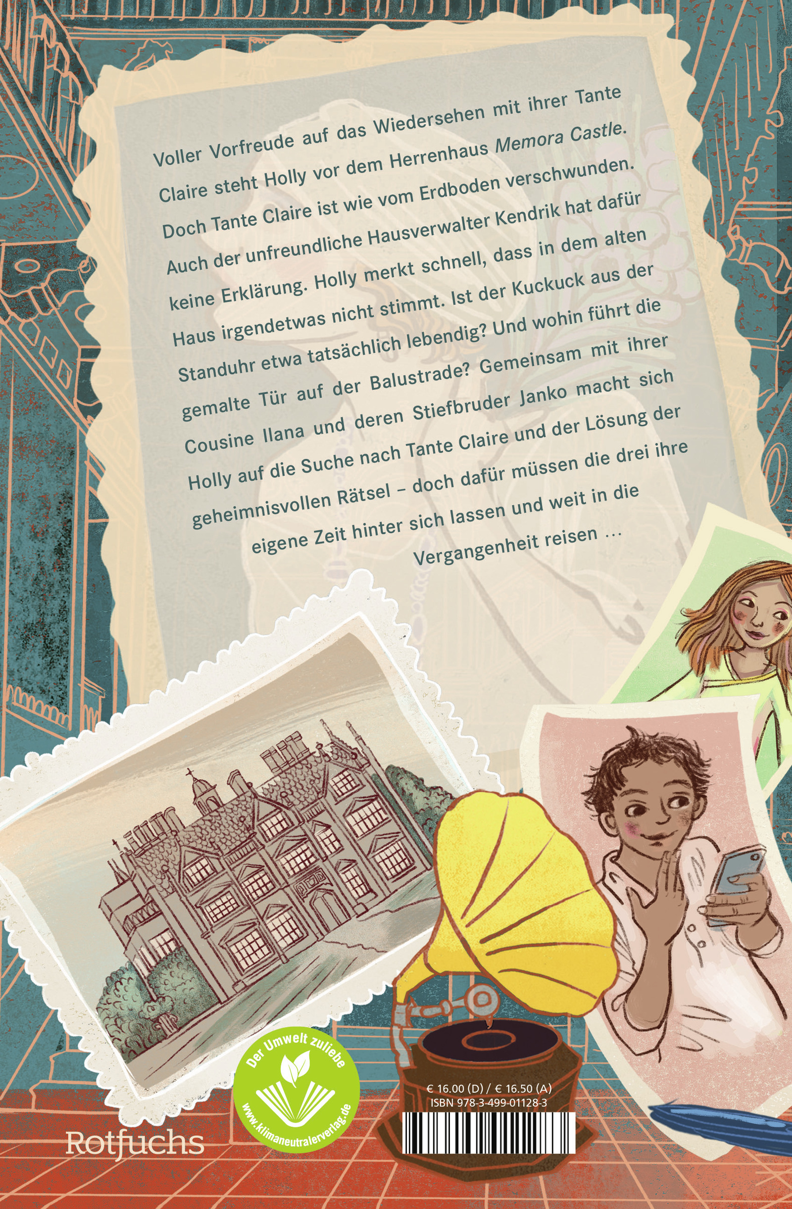 Voller Vorfreude auf das Wiedersehen mit ihrer Tante Claire steht Holly vor dem Herrenhaus Memora Castle. Doch Tante Claire ist wie vom Erdboden verschwunden. Auch der unfreundliche Hausverwalter Kendrik hat dafür keine Erklärung. Holly merkt schnell, dass in dem alten Haus irgendetwas nicht stimmt. Ist der Kuckuck aus der Standuhr etwa tatsächlich lebendig? Und wohin führt die gemalte Tür auf der Balustrade? Gemeinsam mit ihrer Cousine Ilana und deren Stiefbruder Janko macht sich Holly auf die Suche nach Tante Claire und der Lösung der geheimnisvollen Rätsel - doch dafür müssen die drei ihre eigene Zeit hinter sich lassen und weit in die Vergangenheit reisen ...
