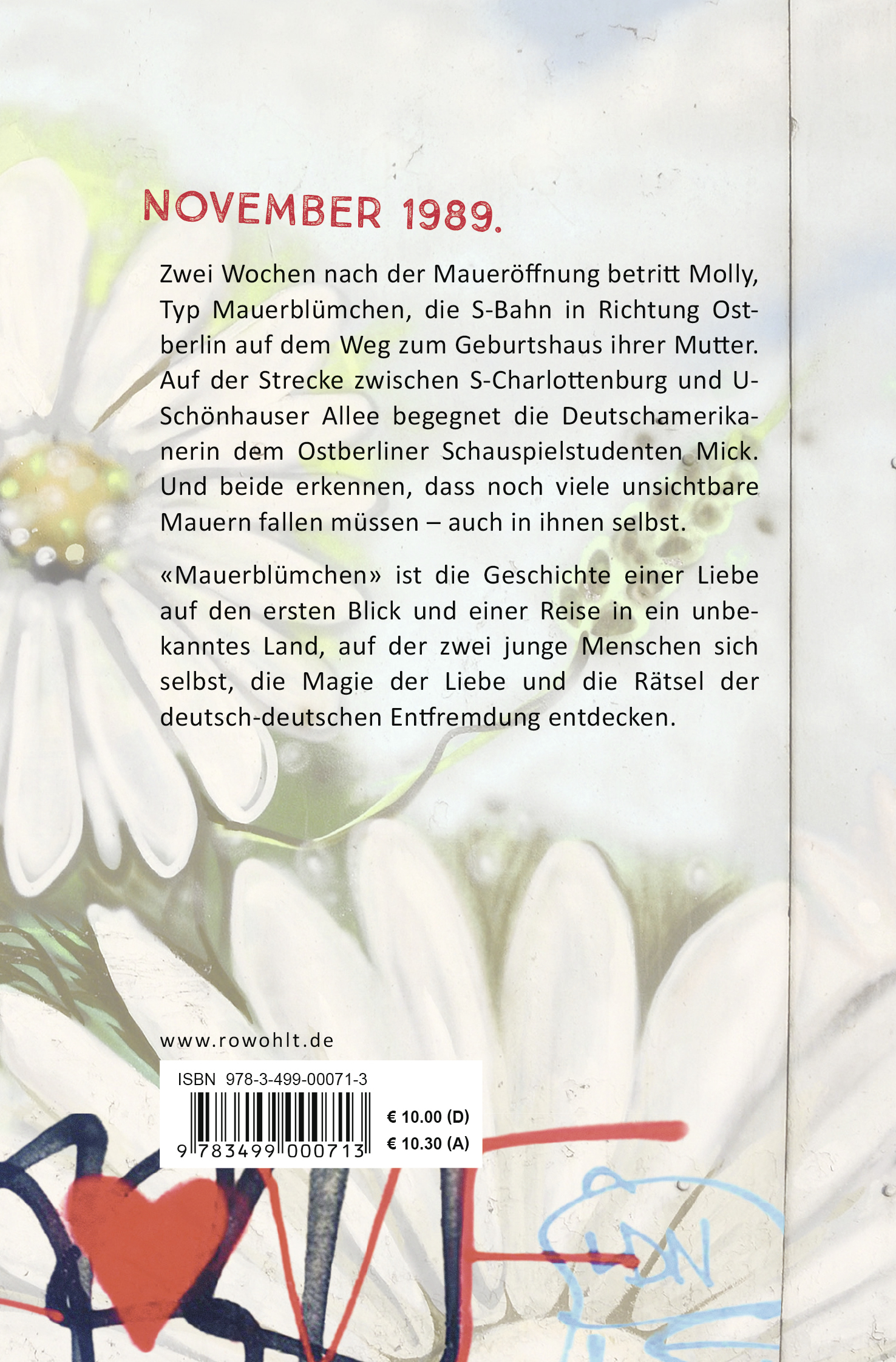 November 1989. Zwei Wochen nach der Maueröffnung betritt Molly, Typ Mauerblümchen, die S-Bahn in Richtung Ostberlin auf dem Weg zum Geburtshaus ihrer Mutter. Auf der Strecke zwischen S-Charlottenburg und U-Schönhauser Allee begegnet die Deutschamerikanerin dem Ostberliner Schauspielstudenten Mick. Und beide erkennen, dass noch viele unsichtbare Mauern fallen müssen - auch in ihnen selbst.